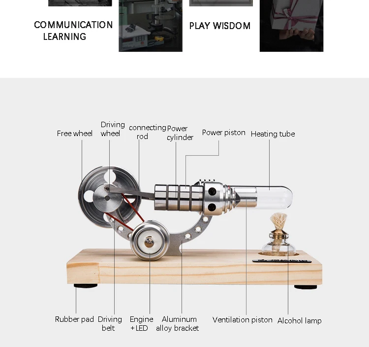 Это своего рода двигатель внешнего сгорания. Это позволяет непрерывно сжигать топливо. Расширительный воздух (или азот или водород) выступает в качестве среды для перемещения поршня. Расширительный газ охлаждается в холодной камере, и процесс цикла повторяется.