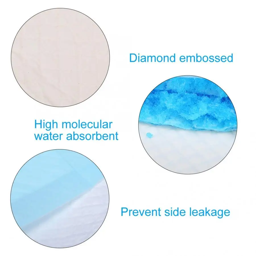 Алмазное тиснение, отводящая жидкость, направляющая мочу, чтобы проникнуть вперед и вниз, предотвращая рефлюкс и сохраняя кожу сухой, удобной в носке. Высокомолекулярный водопоглощающий материал, быстрое поглощение, отсутствие боковой утечки и повреждения кожи. Герметизация горячих прижимных кромок, расширение защитного замка, предотвращение чрезмерного протекания мочи сбоку, не нужно беспокоиться о загрязнении простыни. Нетканая поверхность, мягкая на ощупь, приятная на ощупь, очень дышащая для использования. Подходит для пожилых людей, матерей, пациентов с недержанием мочи и т. д.