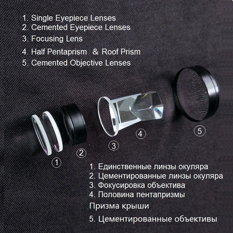 1 piece cemented painted eyepiece lenses - 2 pieces single lens glued together