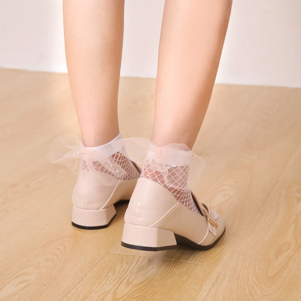 DOIAESKV Мода 2020 новые летние женские сексуальные черные сетчатые короткие носки до щиколотки носки в сеточку для девочек милые женские носки с бантом