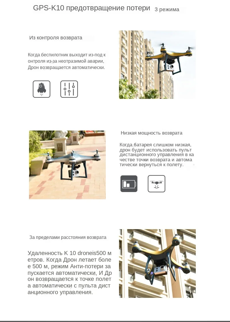 Квадрокоптер K10 Дрон Gps Hd 1080p Wifi Fpv Дрон широкоугольная камера Пульт управления квадрокоптером радиус действия 500 м