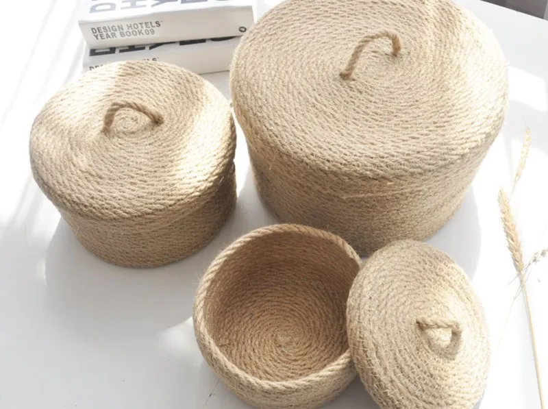 Джутовая настольная корзина для хранения ключей корзина для хранения швейная сумка Корзина для закусок коробка для хранения мелочей коробка для хранения с крышкой