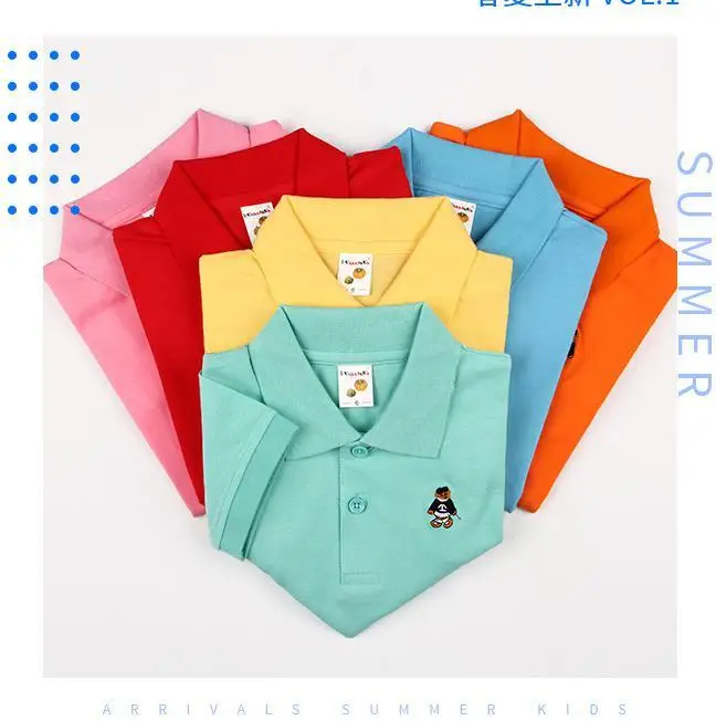 Летняя рубашка поло с короткими рукавами для маленьких мальчиков От 2 до 11 лет Детская однотонная одежда с отворотом детская хлопковая школьная форма, рубашки поло Прямая поставка