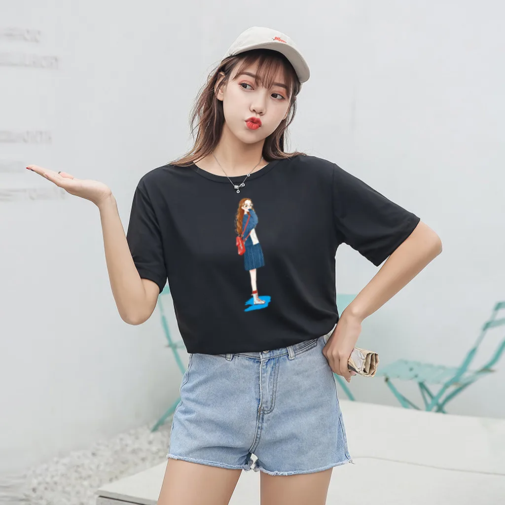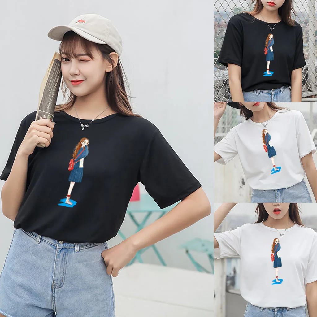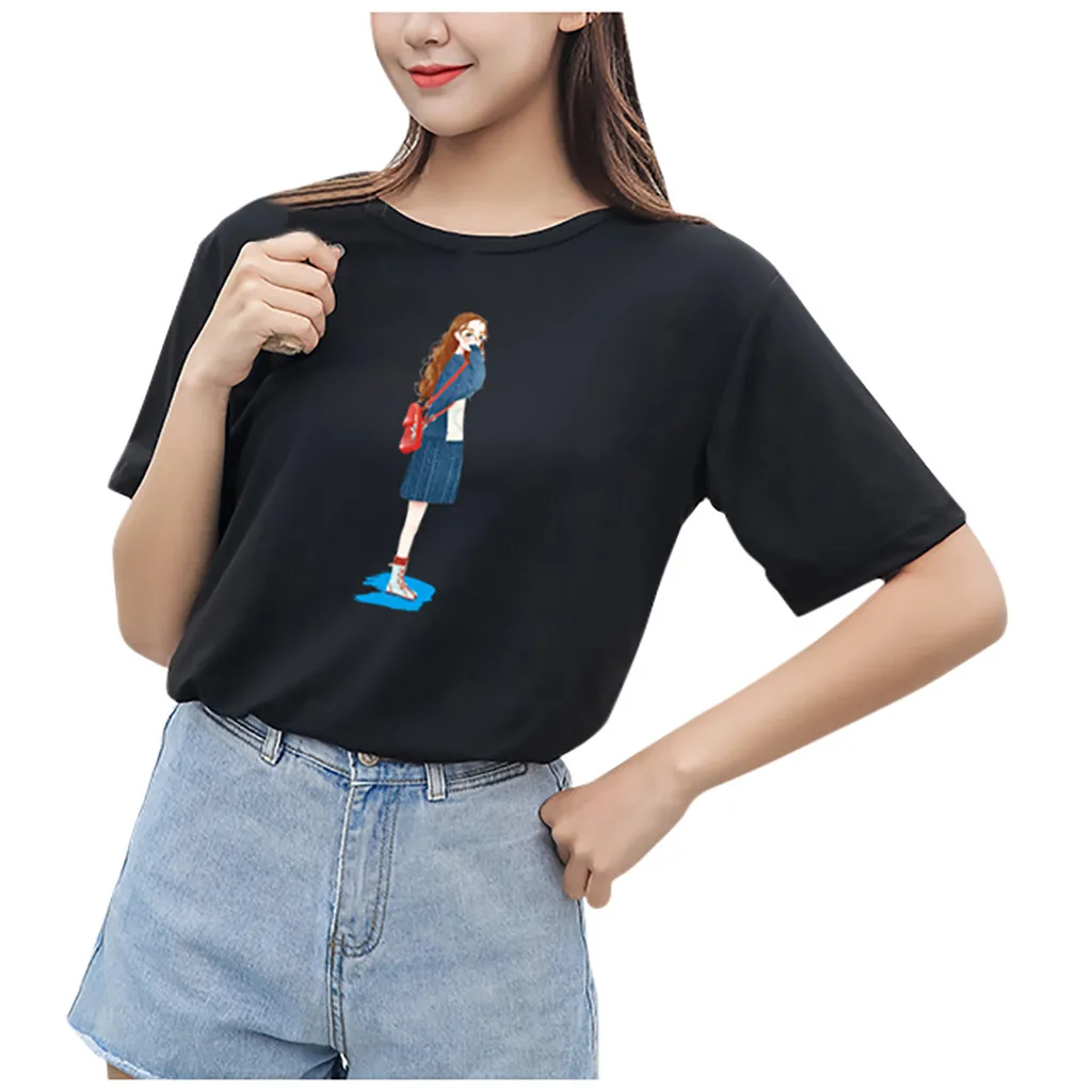 Особенности: Повседневная Блузка с короткими рукавами, с круглым вырезом, футболка, женские топы, осень и весна.