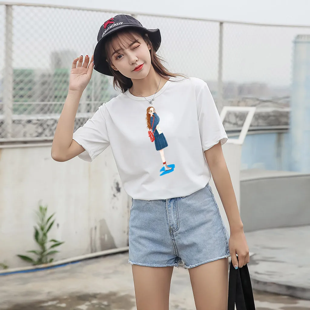 Женская дизайнерская футболка CHAMSGEND, топ-бренд 2020, футболка с принтом персонажа, повседневная женская футболка s camiseta mujer verano