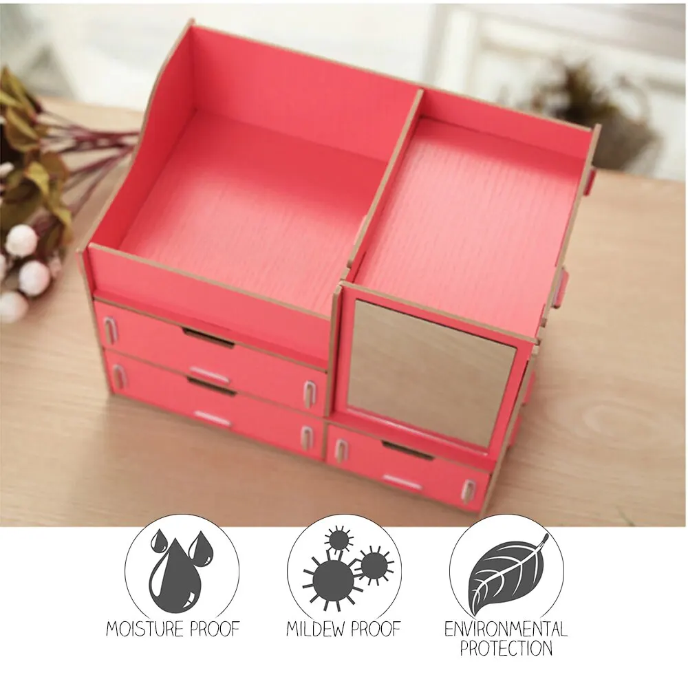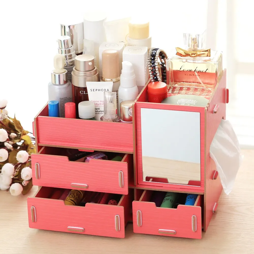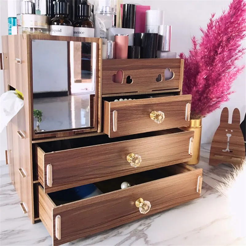 1 шт. большой вместительный деревянный для косметики Органайзер коробка для хранения косметики с зеркалом DIY Многофункциональный Рабочий стол ящики косметический Чехол