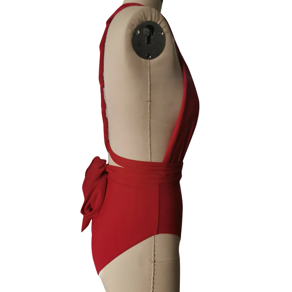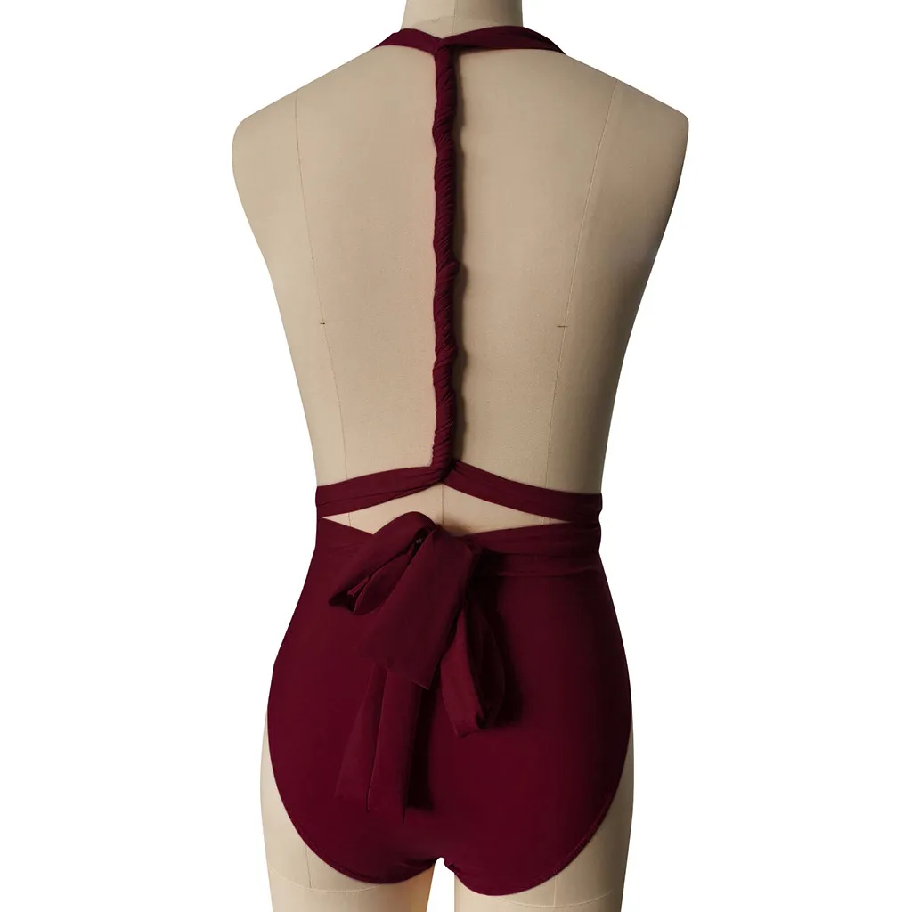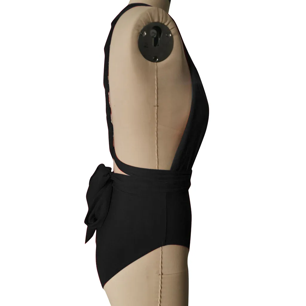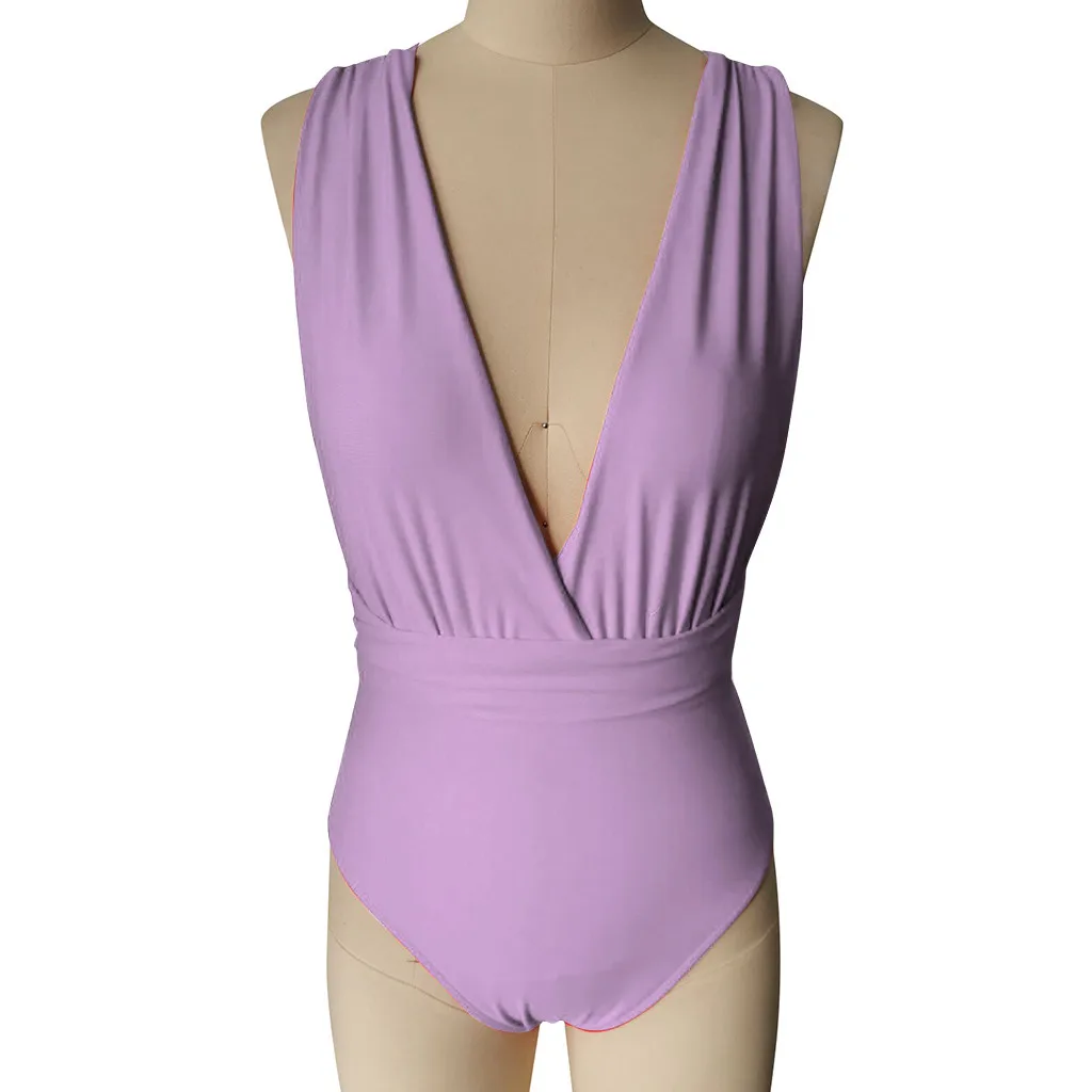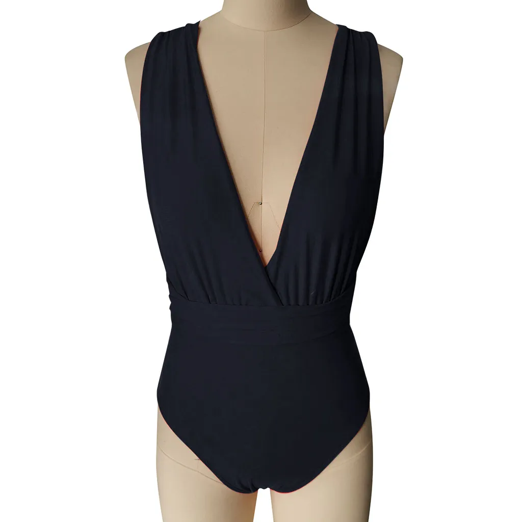 Женский слитный купальник бикини с пуш-ап и глубоким v-образным вырезом