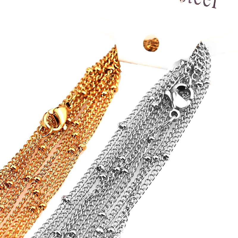 10 шт./лот Ширина 1,5 мм стальной шарик из нержавеющей золотая цепочка ожерелье для женщин цепи ювелирные изделия материалы для изготовления аксессуаров колье-чокер