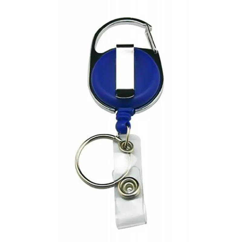Втягивающийся бейдж-катушка, стиль карабина, 1,25 "диаметр, 23" шнур. Диаметр разъемного кольца: 1 ". Прозрачный виниловый ремешок.