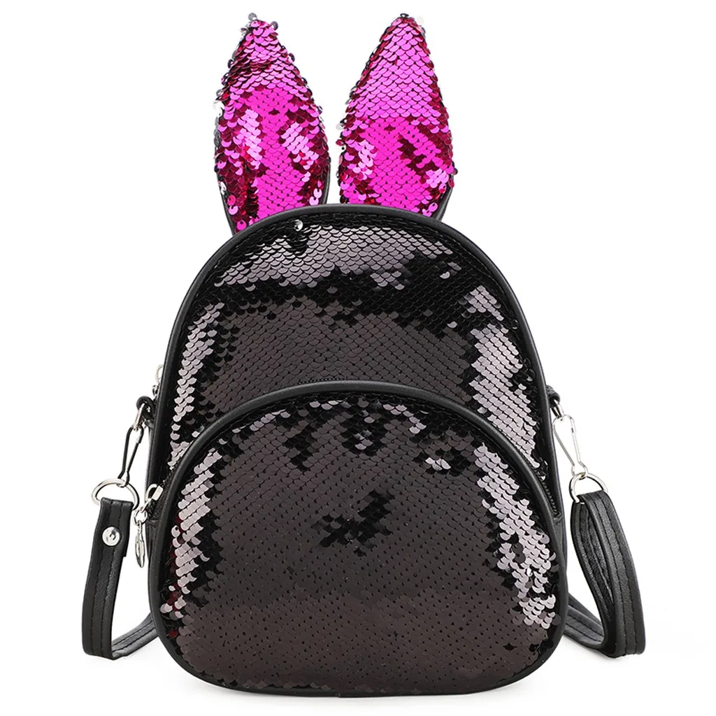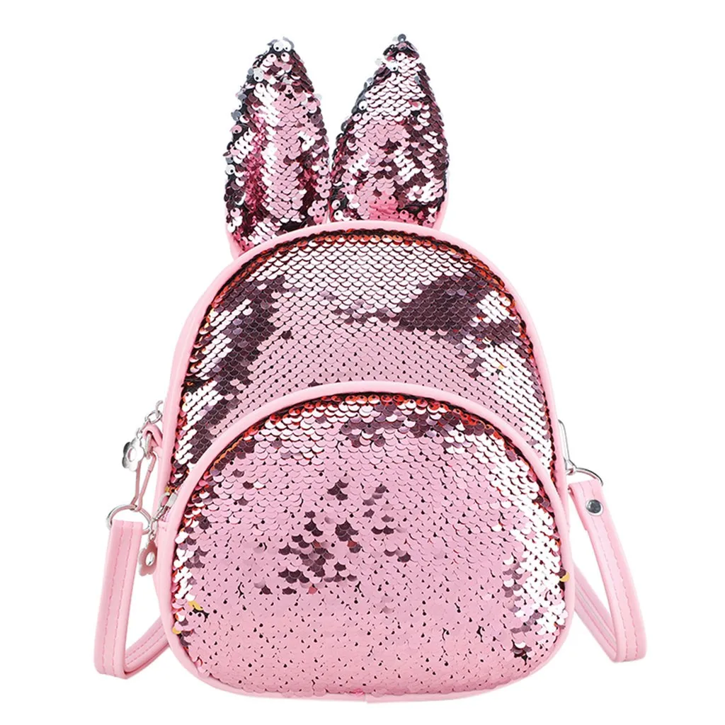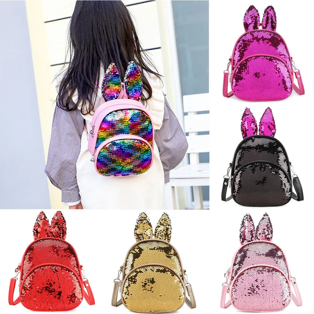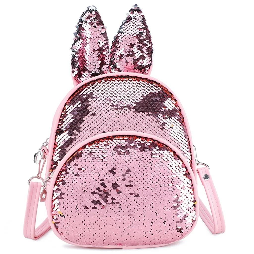 Модная детская сумка с блестками и милыми кроличьими ушками, миниатюрный школьный ранец на плечо для женщин