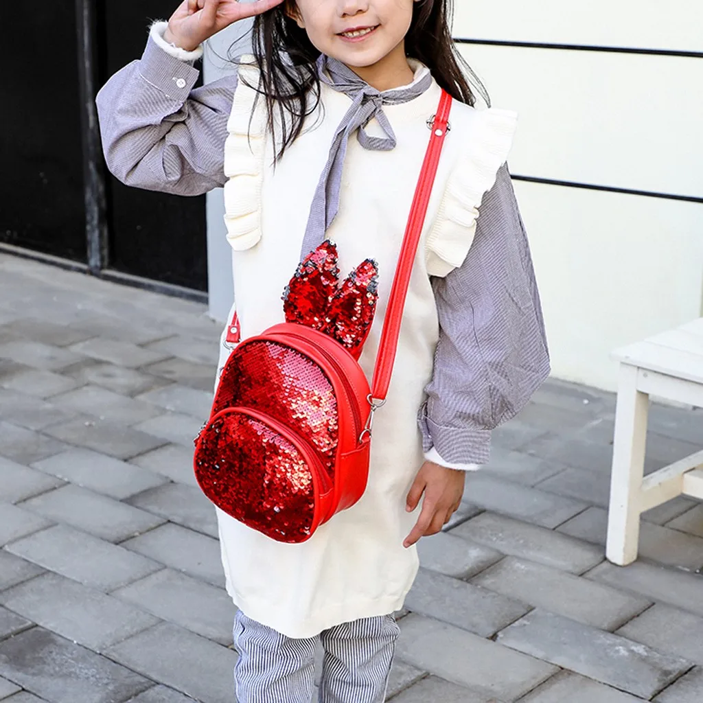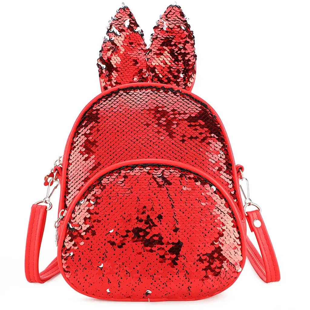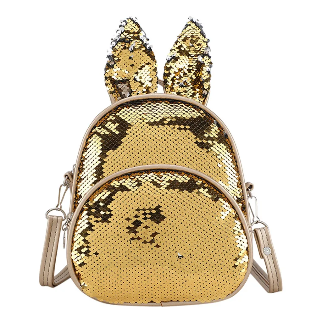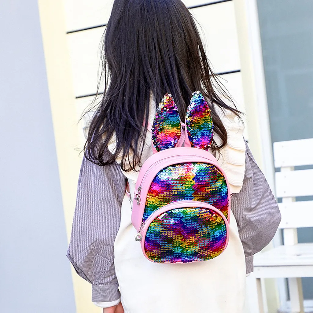 Модная детская сумка с блестками и милыми кроличьими ушками, миниатюрный школьный ранец на плечо для женщин