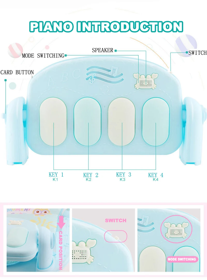 Милый мультяшный кулон и пианино привлекают внимание ребенка. И это может быть удалено, чтобы играть.