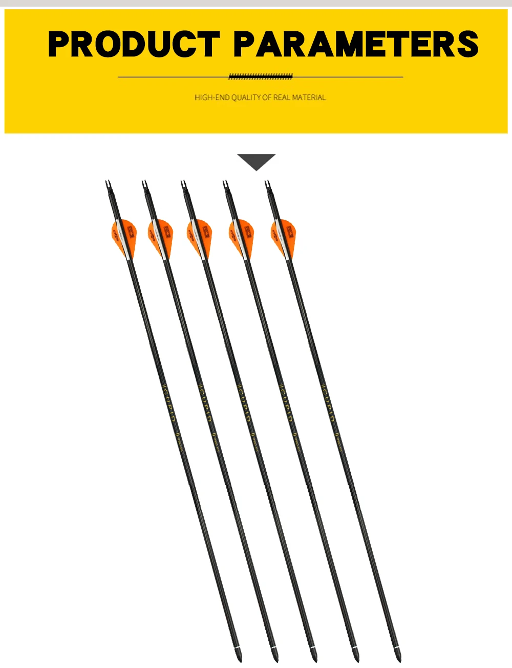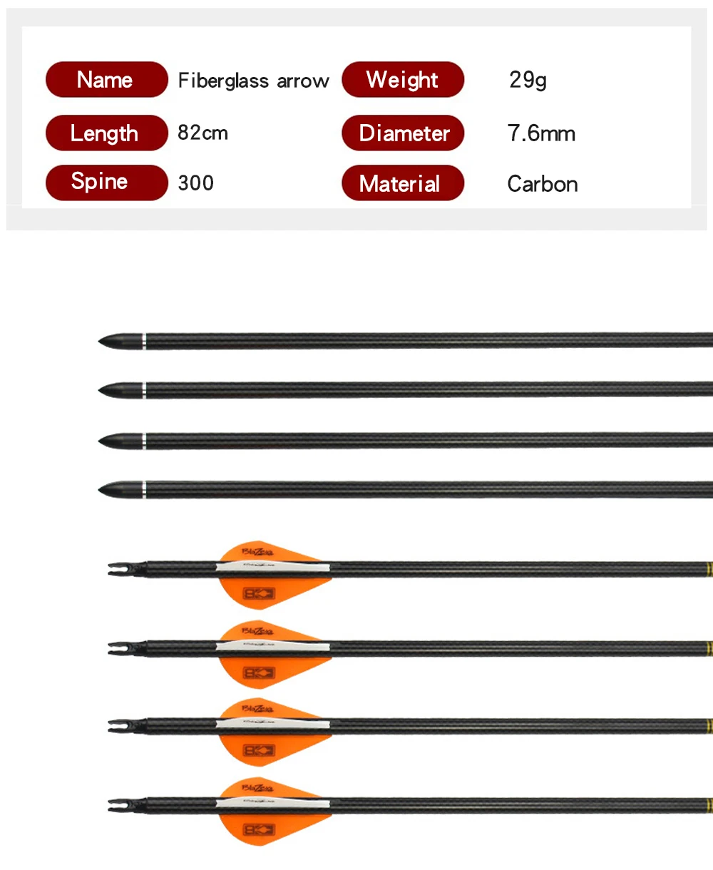 Параметры: Длина вала: 82 см/32 дюйма Позвоночника: 300 Диаметр: 7,6 мм Вал Материал: углерода Перо Материал: Резина Перо Цвет: 2 Orange1white Стрелка: Сменная Вес: около 29 г Сталь наконечники стрел идеально подходят для работы и мишень и охоты. Подходит как для комбинированного банта, так и для рекурсии. Пользователь Обратите внимание: Не прижимайте к бетонной стене или любому твердому веществу. Это может повредить стрелки.