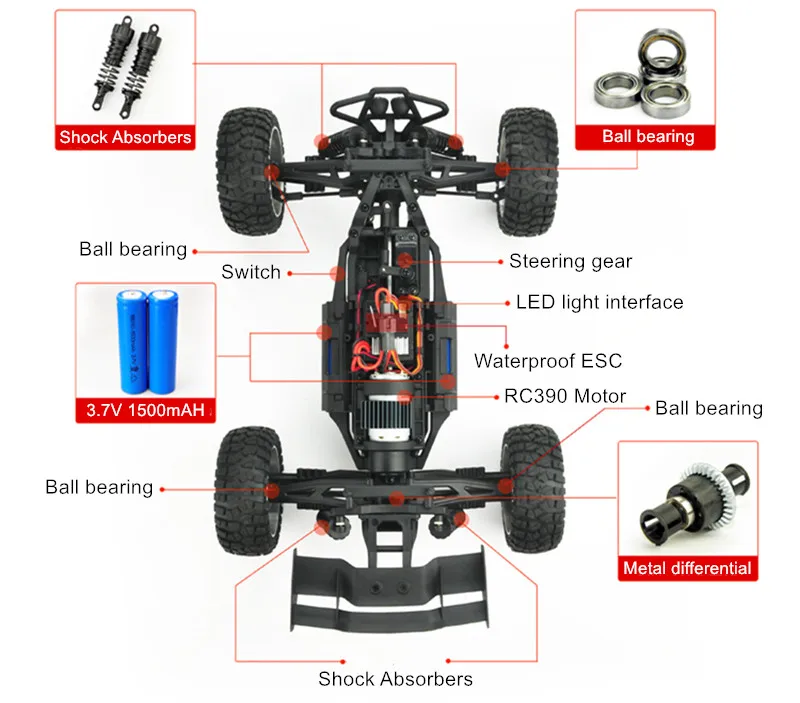 Название продукта: 4WD внедорожный Соотношение продукта: 1:12 Цвет изделия: зеленый/желтый/синий Размер изделия: 40x24x15 см (1 дюйм ≈ 2,4 см) Посылка Размер: 35x27x21 см (1 дюйм ≈ 2,4 см) Расстояние между осями: 24 см Диаметр шины: 9 см Ширина шин: 4 см Высота шасси: 4,5 см Частота: 2,4 ГГц Двигатель: RC 390 Сильный магнитный Рулевая передача: 19 г высокая скорость (двойная рулевая передача) ESC: водонепроницаемый Скорость: 50 км/ч Удаленное Расстояние: > 100 м Срок службы: ≥ 20 минут Время зарядки: 360 минут Батарея Емкость: 3,7 V 1500 мАч (из 2 предметов) Пульт дистанционного управления батареи: 1,5 V "AA" x2 (к товару не прилагаются) Материал изделия: сплав, пластик, резина, электронные компоненты Характеристики продукта: Высокоскоростное переключение, дрейф, подъем, вперед, назад, поворот налево, поворот направо, светодиодный фонарь Конфигурация продукта: 4WD \ 2,4 GHz \ 19g высокоскоростная рулевая передача (2,2 кг крутящего момента) \ Водонепроницаемая встроенная защита ESC \ зарядка \ защита от захвата двигателя \ функция отключения низкого напряжения \ металлический дифференциальный \ Полный автомобильный подшипник \ независимая система подвески \ независимый амортизатор удара Посылка включает в себя: 1 x RC автомобиль 1 пульт дистанционного управления 2 батареи Зарядное устройство-1 шт. 1 х Руководство