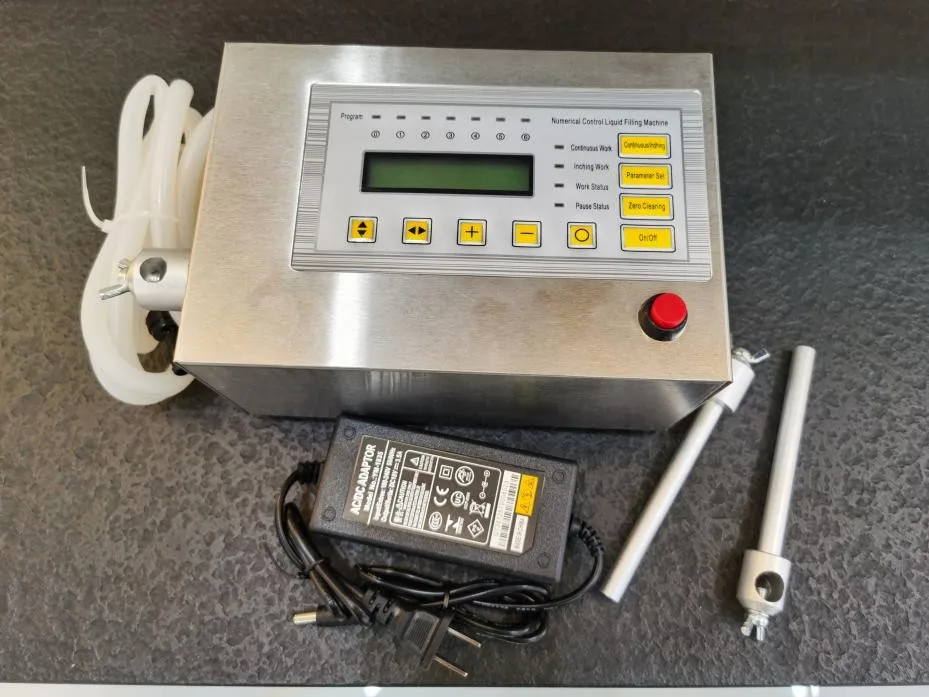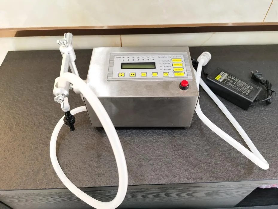 Эта машина для разлива жидкости с числовым управлением компактна и портативна. Корпус сделан из нержавеющей стали, поэтому он прочный и легко чистится. Аппарат имеет саморегулирующийся насос, который может всасывать жидкость из вашего контейнера, а затем выводить через сопло. Можно использовать для заполнения многих различных типов прозрачных тонких жидкостей, включая воду, оливковое масло, топливо, напитки, уксус, молоко и т. д.