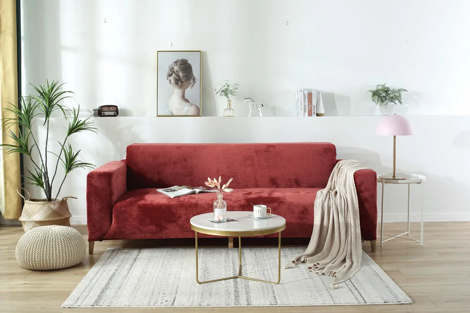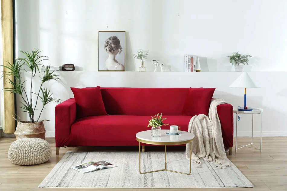 Бархат диванных чехлов для Гостиная серый синий и красный цвета плюшевые эластичные чехол Чехол для дивана диван Полотенца L Форма нужно 2 шт.