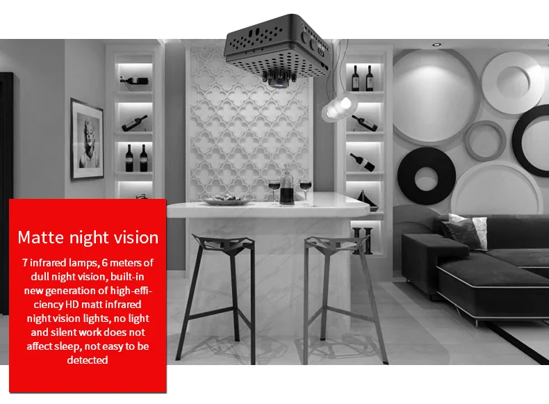 ● 7 инфракрасных ламп, 6 метров тусклого ночного видения, встроенное в новое поколение высокоэффективных инфракрасных ламп ночного видения HD matt ● Не светильник и не работает, не влияет на сон, не легко быть обнаружен