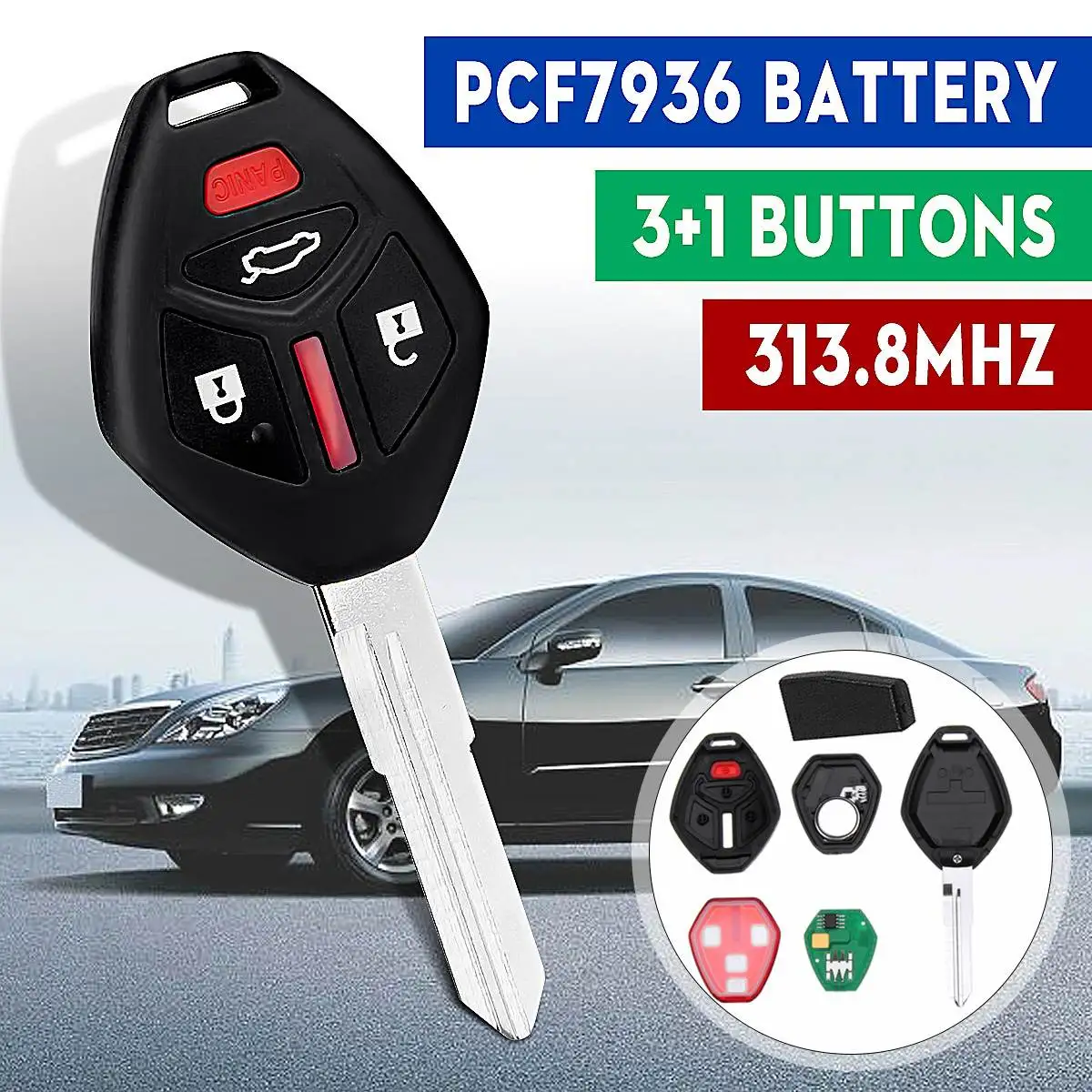 3 + 1 кнопки 313,8 МГц без ключа дистанционного ключа Fob с батареей для Mitsubishi