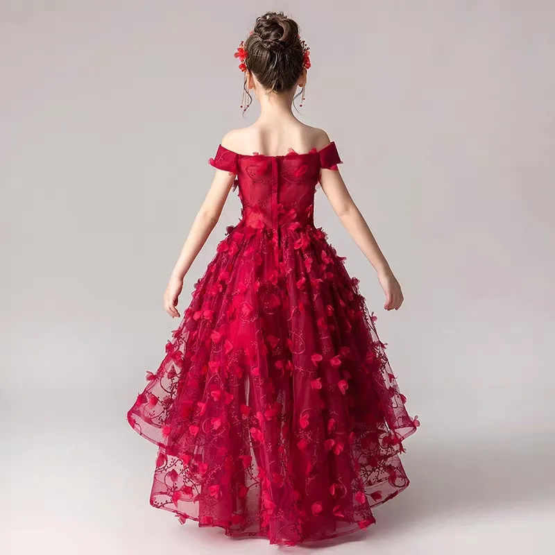 Элегантное детское платье винно-красного цвета с открытыми плечами для дня рождения, свадьбы, вечеринки, выпускного вечера, 2020, летнее платье для девочек-подростков