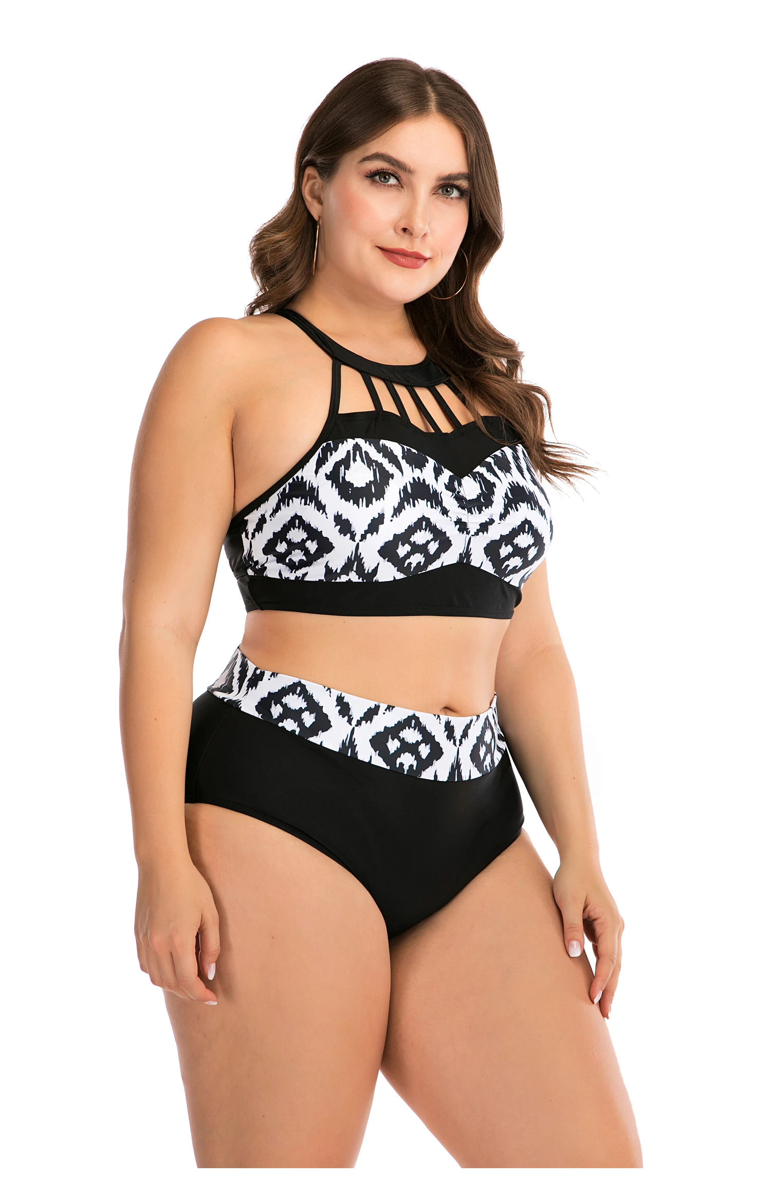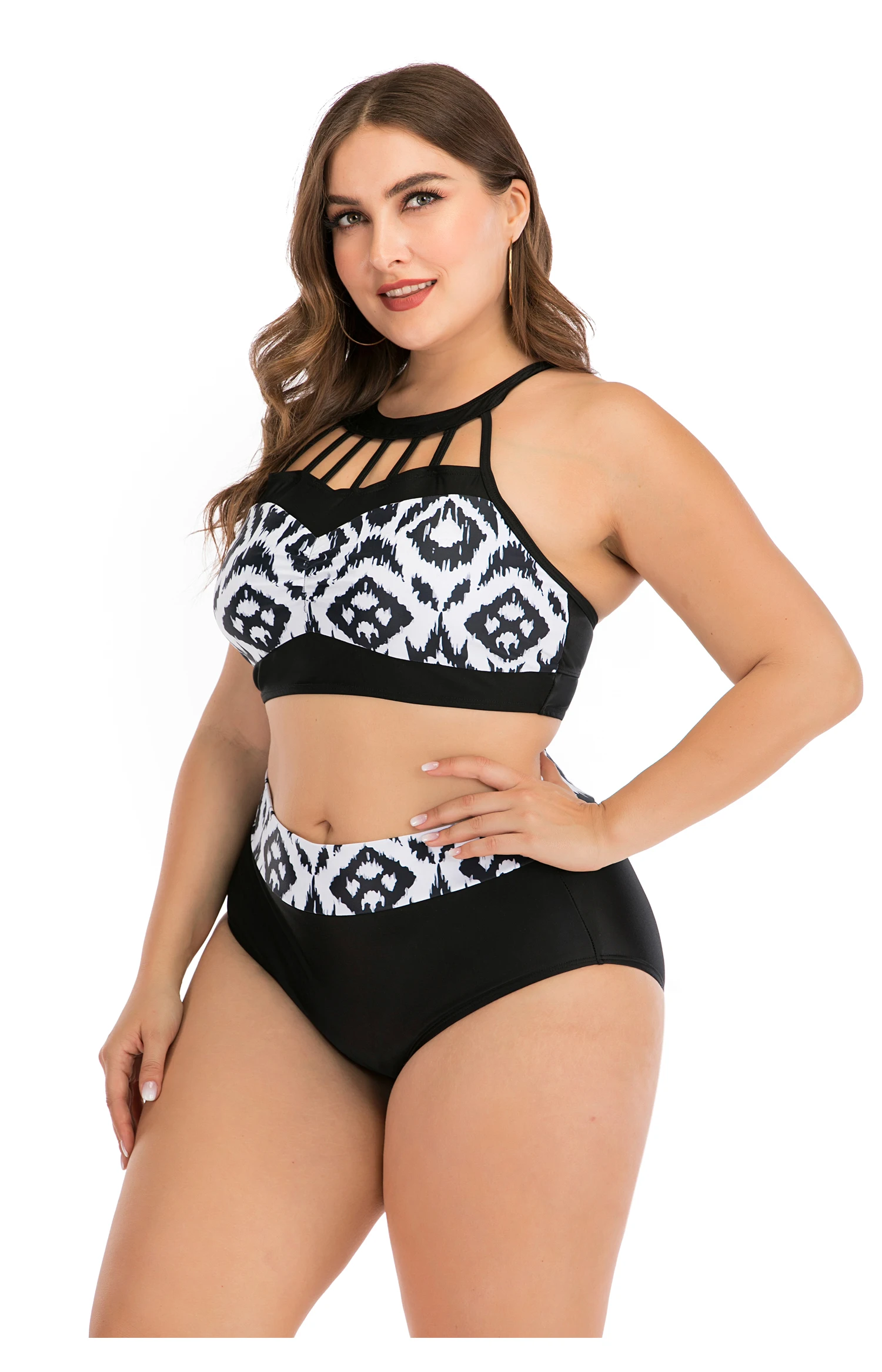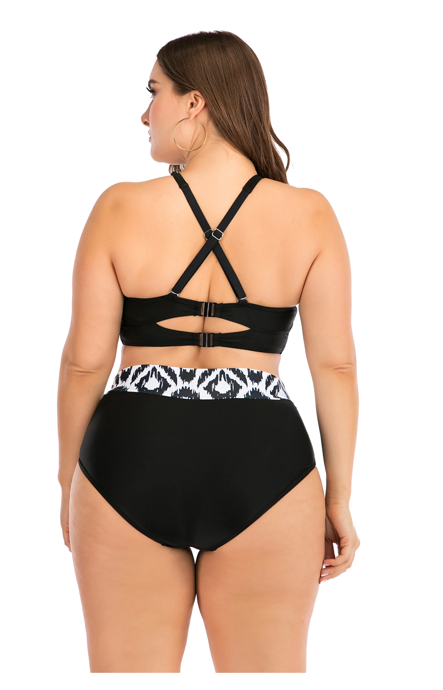 Размера плюс комплекты бикини Для женщин большая грудь с низким вырезом на спине Высокая Талия Плавание бикини сексуальный пуш-ап, комплект из двух предметов с принтом бикини, пляжный купальник Плавание костюм