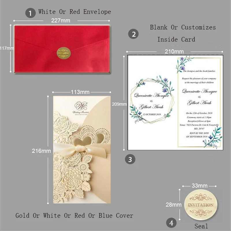 Особенности: Пригласительная карта является наиболее важной частью мероприятия, такого как свадьба, день рождения, деловая вечеринка, вечеринка для детского душа, Свадебная вечеринка, выпускной вечер, помолвка и так далее; Специальная дизайнерская пригласительная карта позволит вашим гостям почувствовать вашу искренность, творение и оригинальность; Выбирая лазерную карточку, тонкое мастерство, добавьте более теплую и романтичную атмосферу для вашей вечеринки. Советы: внутренняя карта пуста. Спецификация: Материал: высококачественная бумага Цвет: белый, золотой, красный, синий Размер карты обложки: около 11,3х21, 6 см Размер внутренней карты: около 21x20, 9 см Размер конверта: около 22.7x11.7 см (1 мм = 0,0393 дюйма, 1 дюйм = 2,54 см) Вес: 25 г/компл. Упаковка согревает: 50 шт. чехлов = 50 шт. карманов для лазерной резки + 50 шт. лент, без внутренней карты, без конверта, без наклеек 50 чехлов и вкладышей = 50 карманов для лазерной резки + 50 лент + 50 внутренних пустых карточек, без конверта, без наклеек 50 комплектов карт = 50 шт. лазерных вырезанных карманов + 50 шт. лент + 50 шт. внутренних пустых карт + 50 шт. конвертов + 50 шт. наклеек Примечание: 1. Размер для ручного измерения, может быть погрешность от 0 до 1 см, относится к нормальному явлению; 2. Из-за разницы между различными мониторами изображение может не отражать фактический цвет изделия. Спасибо!