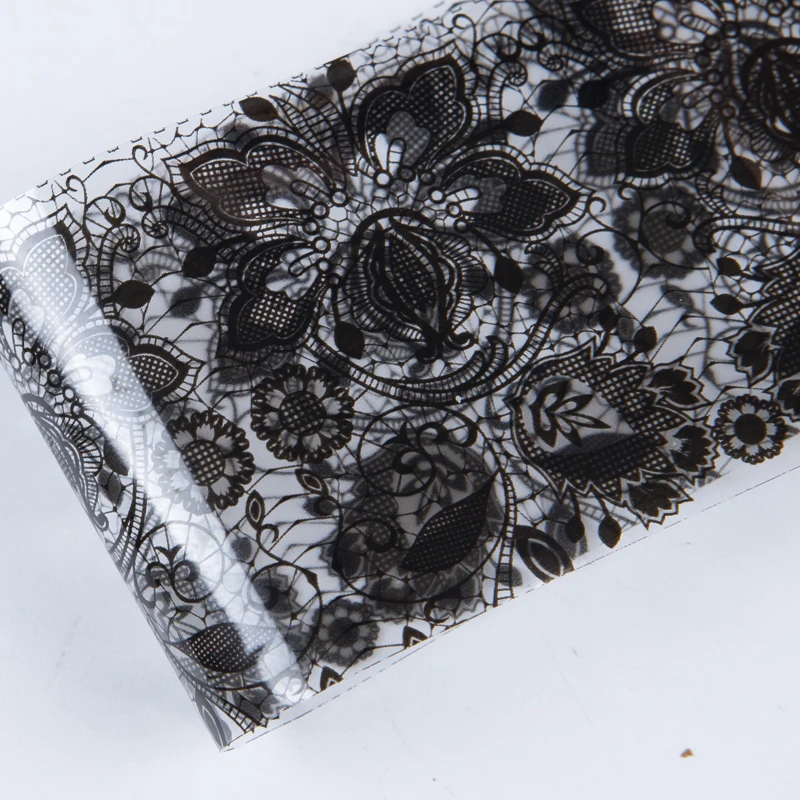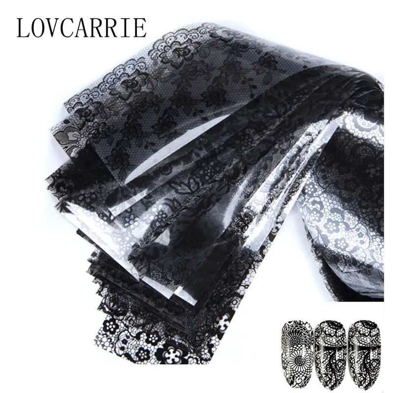 LOVCARRIE, 18 шт., черно-белые наклейки из фольги с цветами для ногтей, лист, кружева, переводная наклейка для дизайна ногтей, слайдер, обертывания для французского украшения Nailart