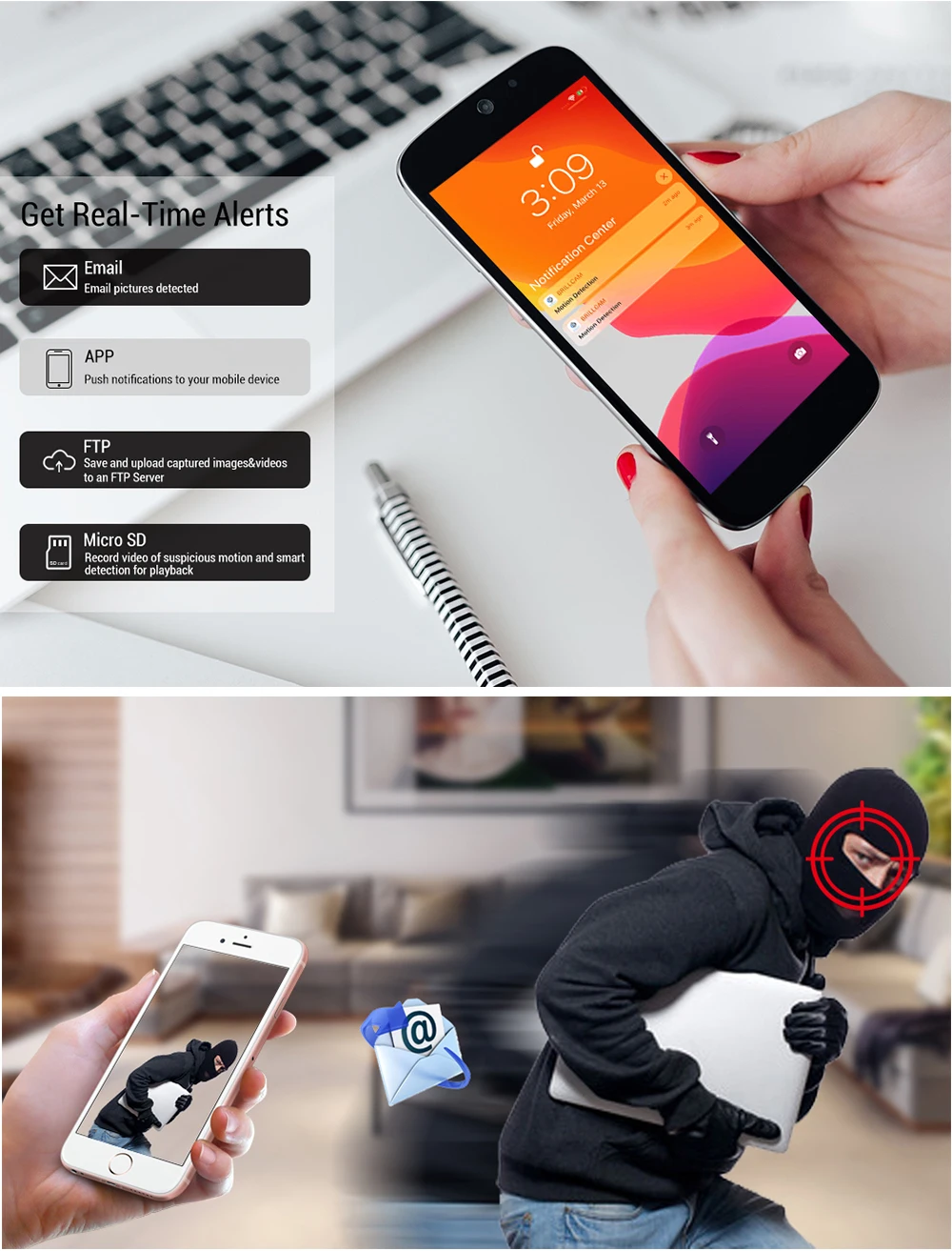 Получайте оповещения FTP/Email/App с любым подозрительным движением.