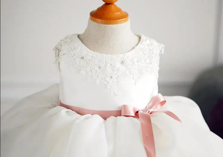 Элегантное платье для девочек; Летние кружевные вечерние платья принцессы из тюля с поясом и аппликацией для девочек 2020; Одежда для крещения для маленьких девочек