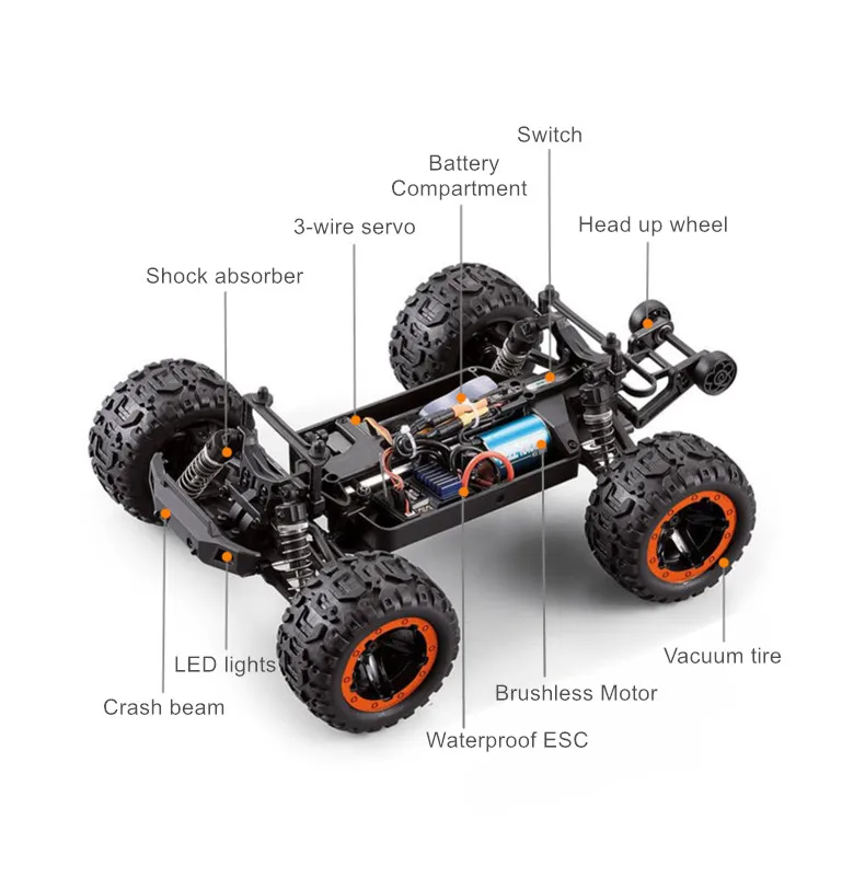 Конфигурация продукта: 4WD \ 2,4 ГГц \ Водонепроницаемый интегрированный ESC \ защита зарядных устройств \ двигатель анти-воспользоваться защита \ низкого напряжения функция отключения питания \ планетарный дифференциал \ транспортное средство в сборе, подшипники \ независимая подвеска \ независимых амортизатор