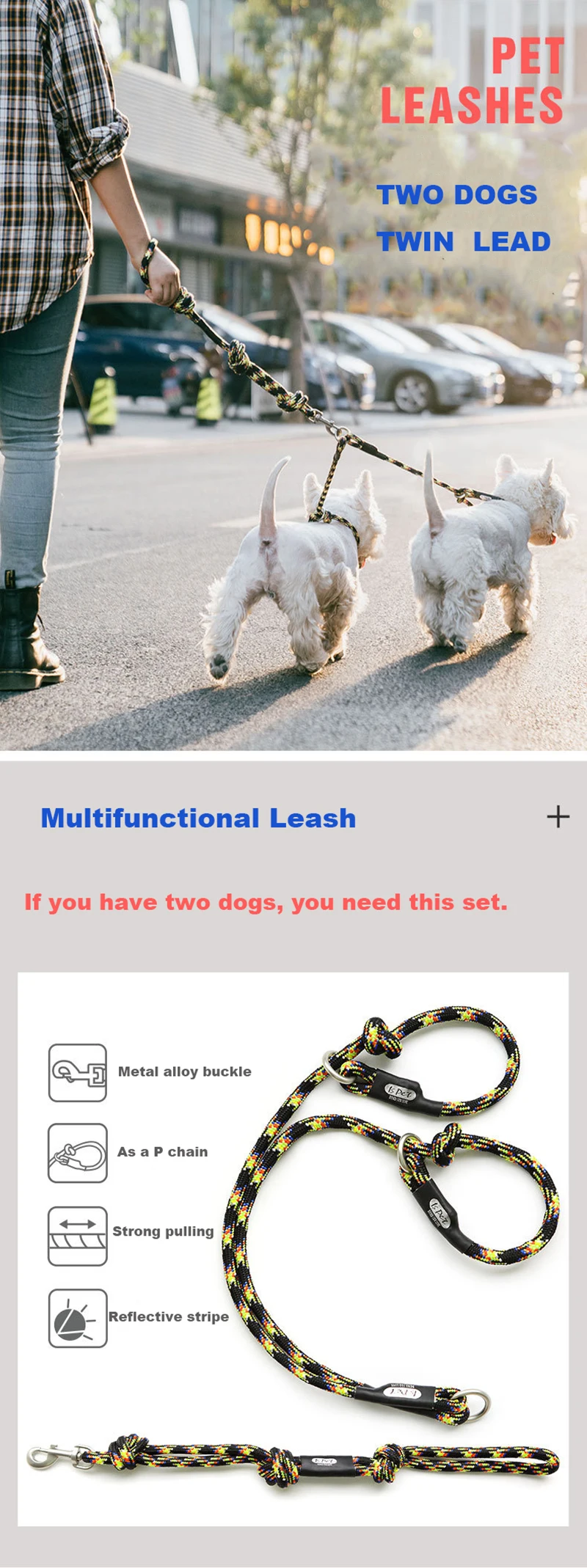 * Высокая прочность, удобство на ощупь * светящийся, отражающий дизайн безопасности * Простой и надежный дизайн. * Диаметр круглого каната: 13 мм * Длина поводка: 60 см Технические характеристики Название продукта: Легкий + серия + Светоотражающий Поводок Поводок подходит для всех пород. Материал: прочное полиэфирное волокно (не раздражает кожу). Аксессуары: крепкий цинковый сплав и застежка на крючок с замком.