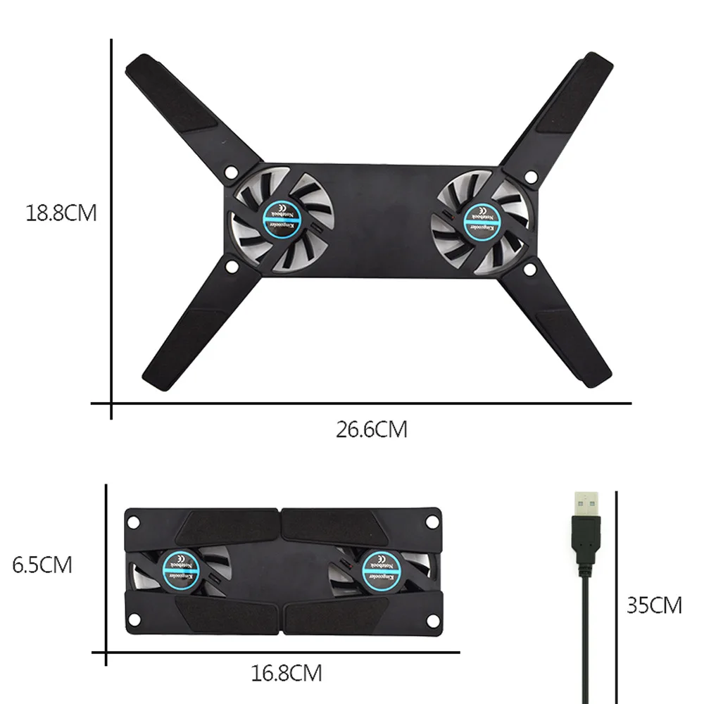 Эта подставка для ноутбука с двойным вентилятором может выдуть холодный воздух на дно ноутбука и уменьшить тепло, которое создает ноутбук от woking. Эта подставка для ноутбука с usb-вентилятором складная, и вы можете легко сложить ее в маленький размер, чтобы вы могли поместить ее в рюкзак. Эта охлаждающая подставка для ноутбука использует USB для питания вентилятора, что означает, что вы можете использовать ноутбук для его питания. Охлаждающая подставка для ноутбука имеет нескользящий коврик на поверхности и может предотвратить скольжение ноутбука и не повредить дно ноутбука. Держатель для ноутбука изготовлен из прочного АБС-пластика, он прочный, его трудно сломать, вы можете использовать его в течение длительного времени и легко чистить.