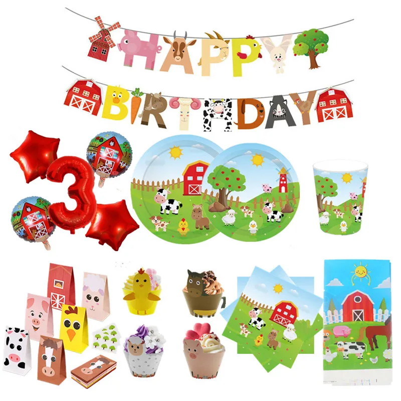 Детский душ ферма животные подарки для тематической вечеринки украшения с воздушным шаром мультфильм одноразовые наборы посуды товары для дня рождения