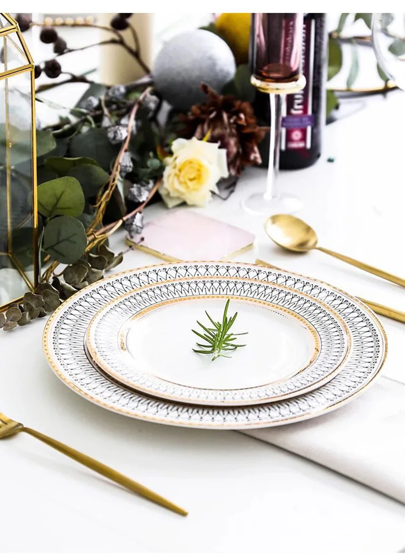 Круглые 8 дюймов/10 дюймов обеденные тарелки золотая линия отделка Роскошные блюда столовая посуда тарелки