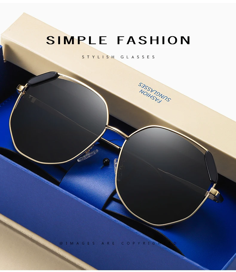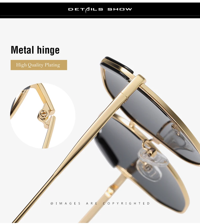 1. Удобный дизайн висков, легко подходит для человеческого тела 2. Подходит для лица и уменьшает давление на переносице 3. Петля высокого качества для плавного открытия и закрытия 4. Средства защиты от солнца для путешествий на автомобиле 5. Изысканная толстая металлическая рама 6. Модные затемняющие и УФ-Защитные женские нестандартные солнцезащитные очки
