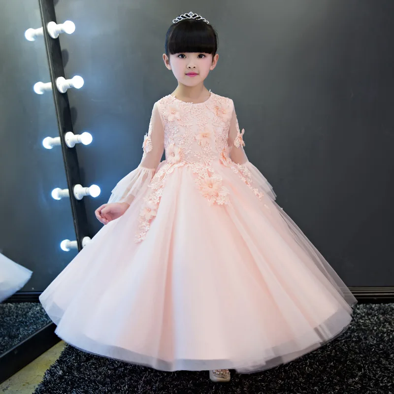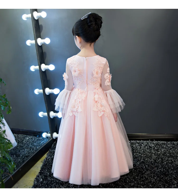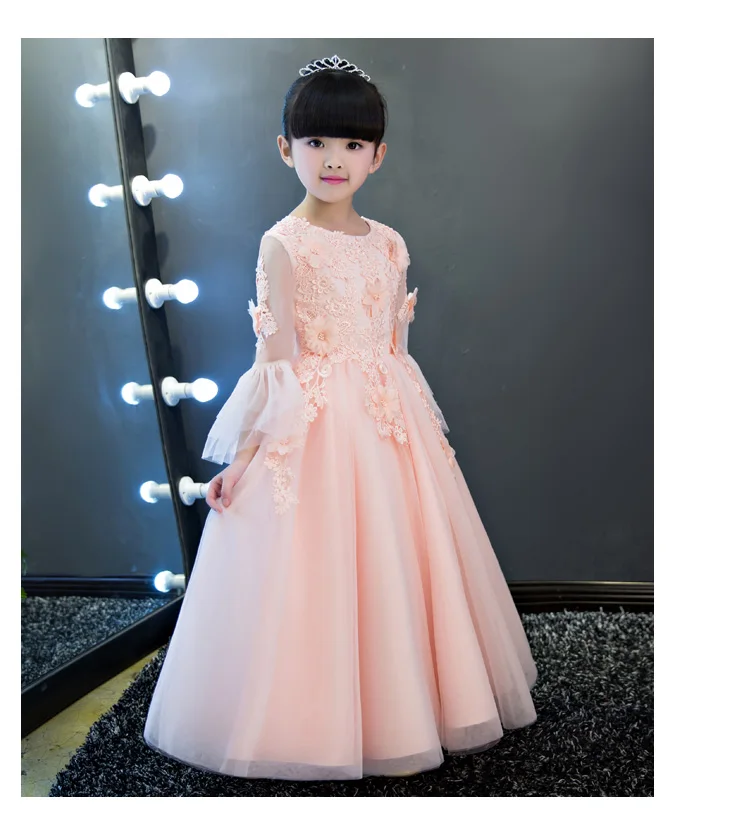 Кружева аппликация платье с цветочным узором для девочек на день рождения платье принцессы Вечерние вечернее платье для выпускного вечера для девочек Длинное Элегантное платье для девочек-подростков; Одежда для рождественских праздников