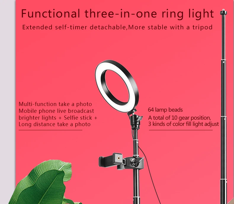 Характеристика: Характеристики: 3 вида цветов регулируется Интерфейс: 1/4 универсальное винтовое отверстие Мощность: 5 Вт источник питания 5 В USB шнур питания Длина 200 см Материал: алюминиевый сплав + ПК Технические параметры продукта: 3 вида цветов, плавное затемнение, белый свет, теплый свет, мягкий свет Максимальная высота: 1,785 м Минимальная высота: 1,56 м Сегменты: 3 Материал: алюминий + ПК