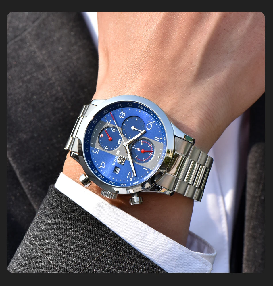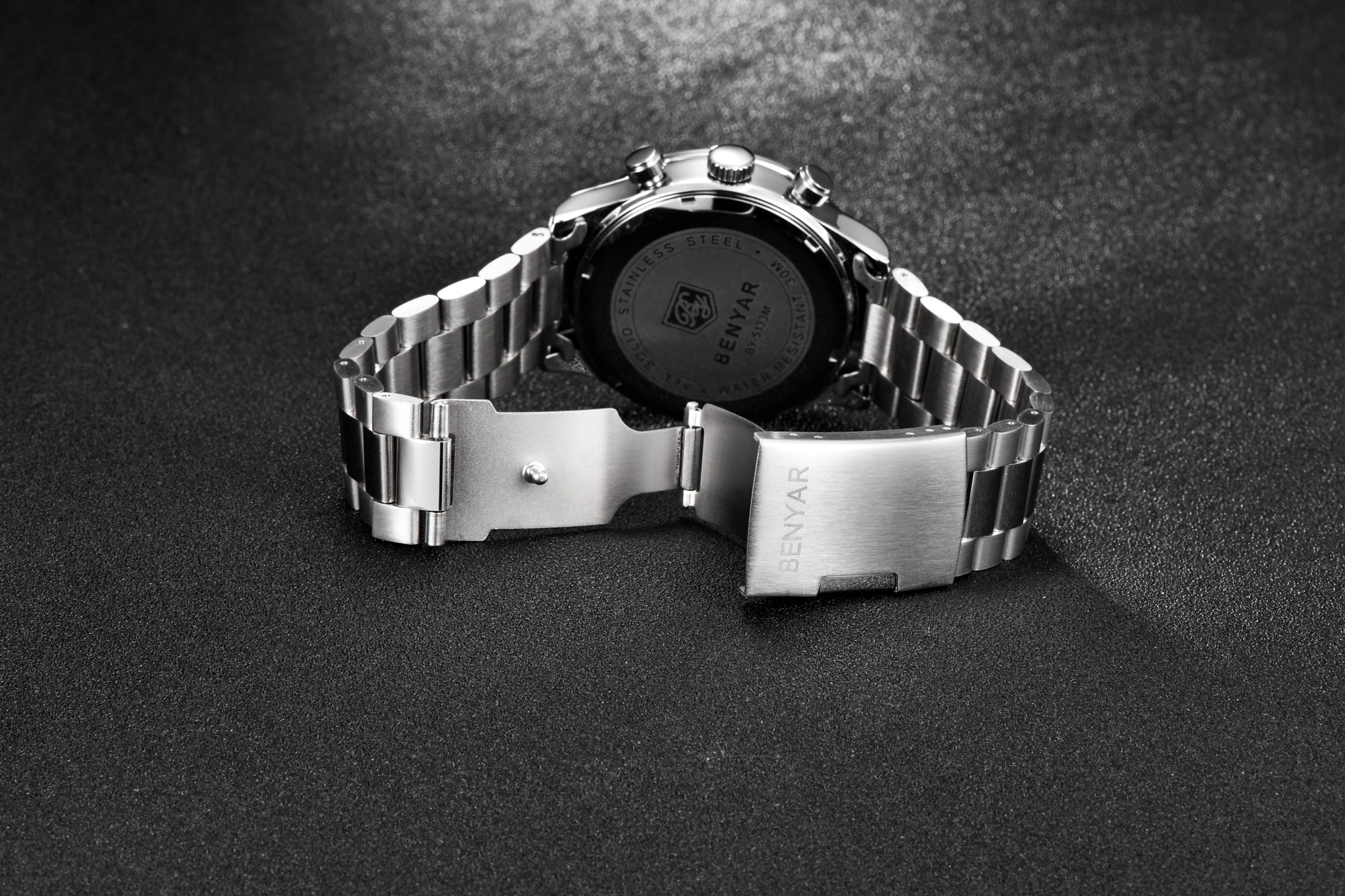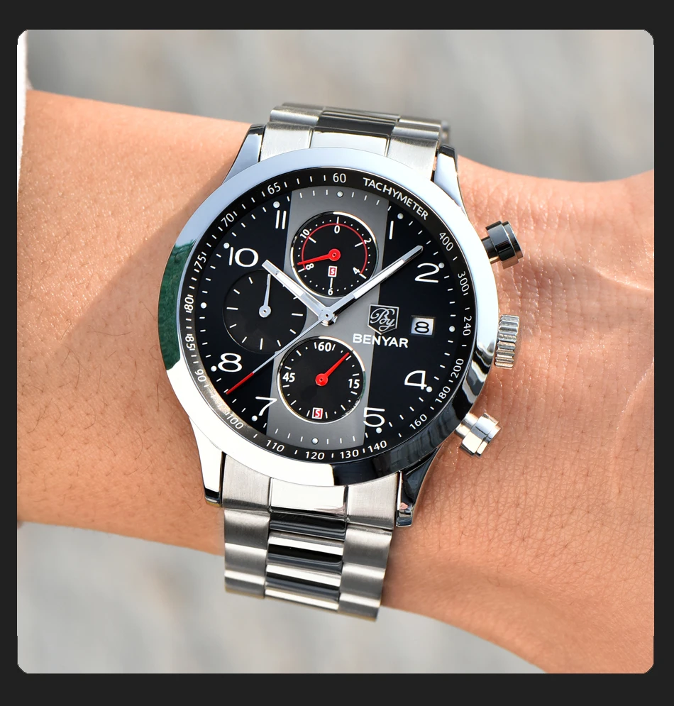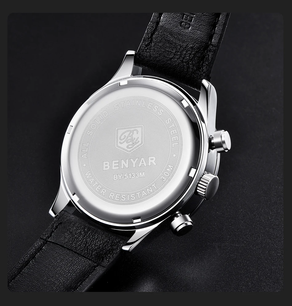 BENYAR часы мужские модные Хронограф Спортивные ремешок из нержавеющей стали брендовые кварцевые часы Relogio Masculino Reloj Hombre черный
