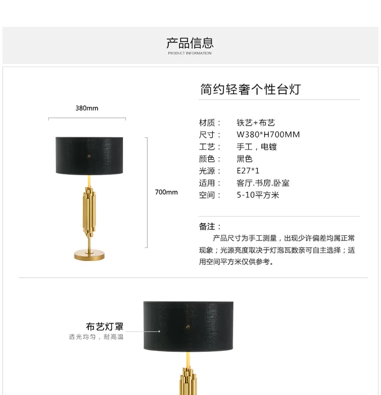 Высококачественная Роскошная модная черная Золотая настольная лампа, прикроватная лампа для спальни, короткая Современная декоративная настольная лампа
