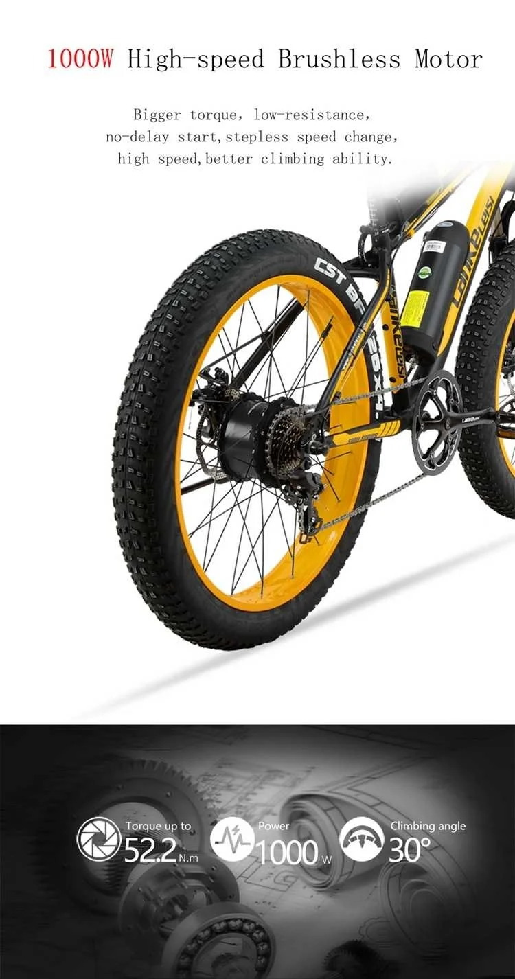 ВелосипедNet wight24 кгПредел нагрузки<150 кгМаксимальный преодолеваемый уклон<30 °Диапазон PAS120 кмБатареяБатарея48V16AHНоминальное напряжение48 ВВремя зарядки5 ~ 7HДвигательНоминальная мощность1000 ВтНоминальное напряжение48 ВРазмерыРазмер колеса26*4,0
