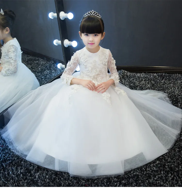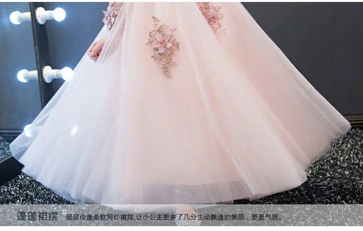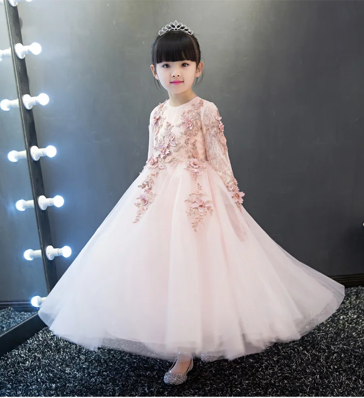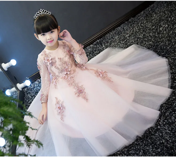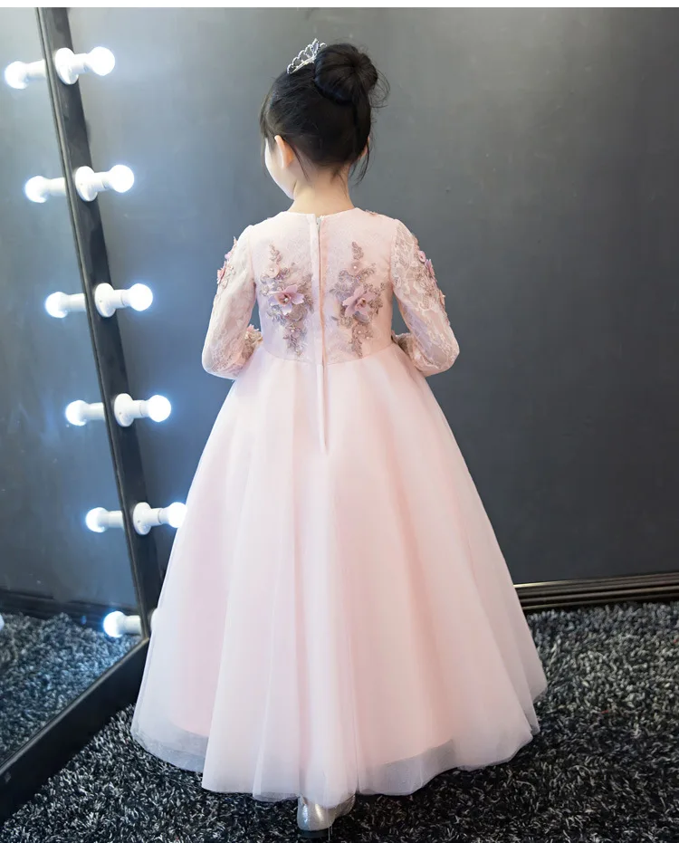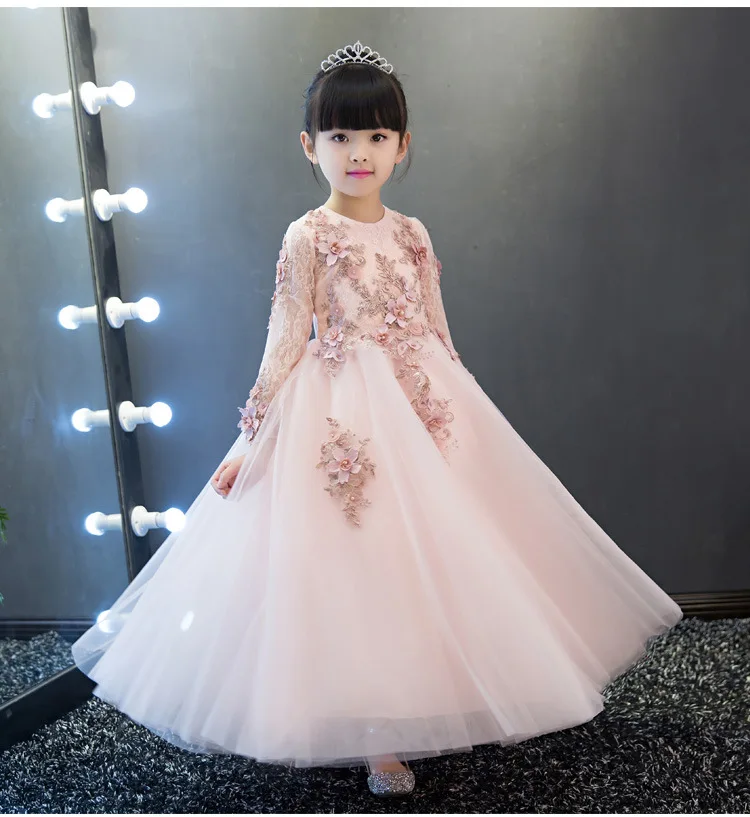 Розовое детское платье на выпускной, платье, длинные рукава, длина по щиколотку, Вечерние Платья с цветочным узором для девочек, держащих букет невесты на свадьбе, платья для детей, платье для девочек на праздник
