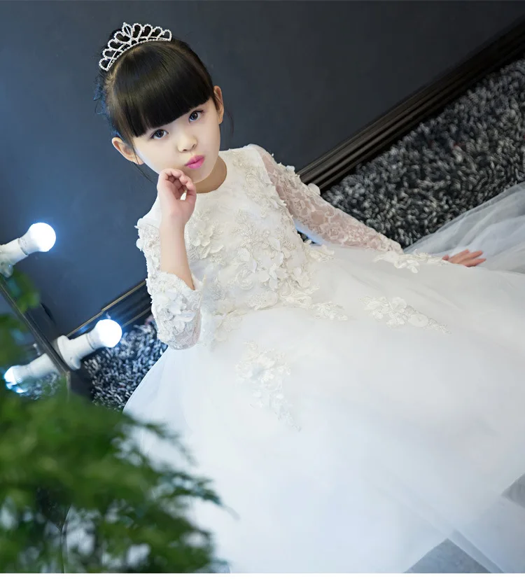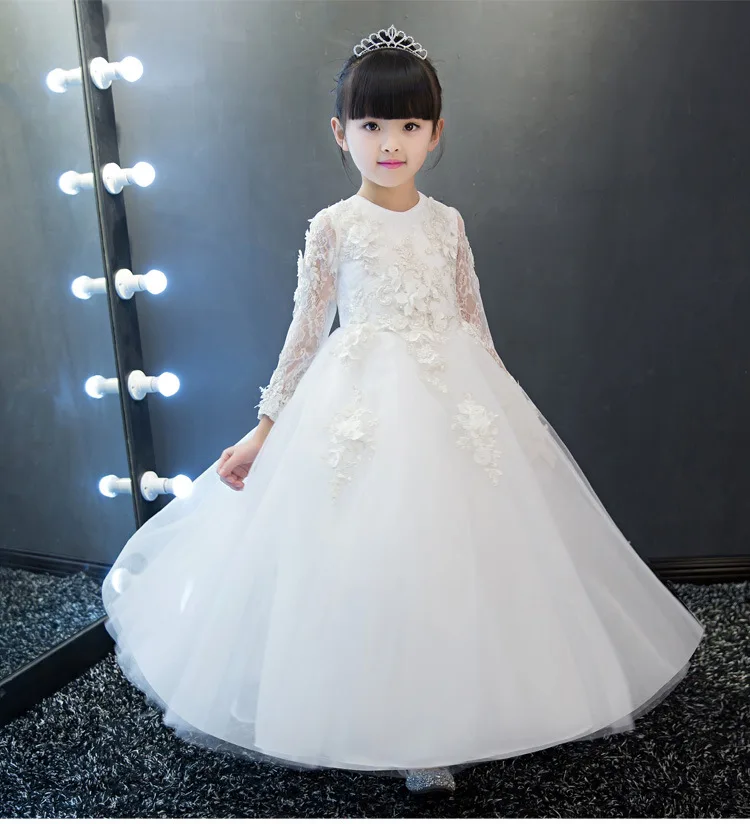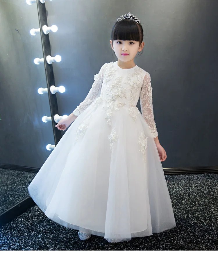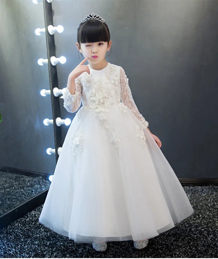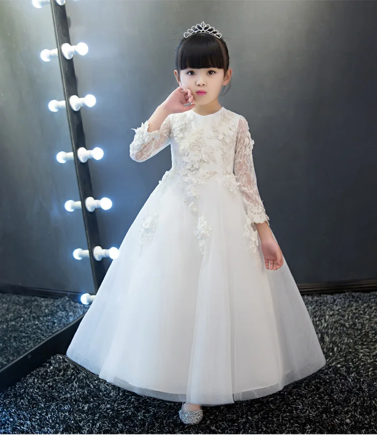 Розовое детское платье на выпускной, платье, длинные рукава, длина по щиколотку, Вечерние Платья с цветочным узором для девочек, держащих букет невесты на свадьбе, платья для детей, платье для девочек на праздник