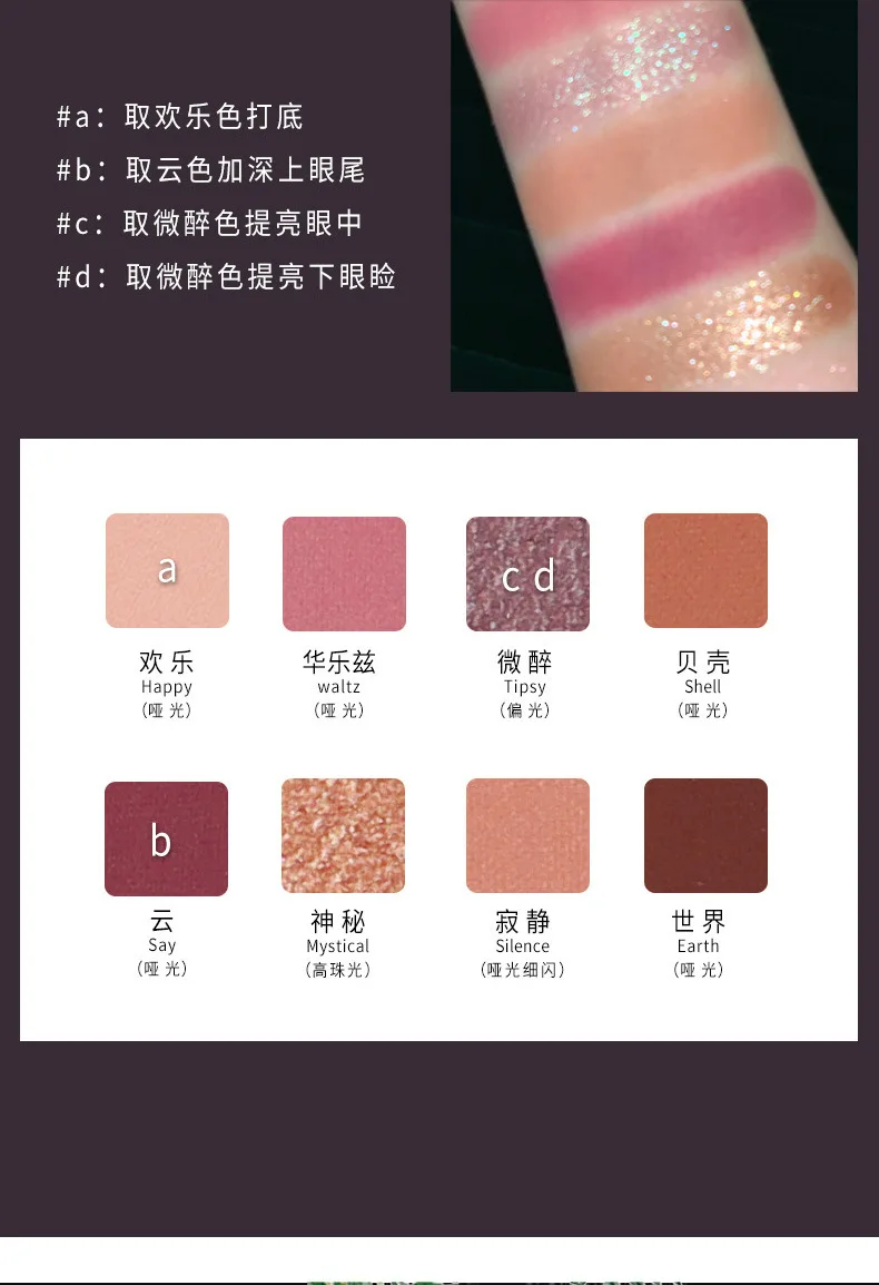 Палитра теней для век NOVO, красно-фиолетовые нюдовые тени для век, 8 цветов, матовые блестящие тени для век, водостойкий пигмент