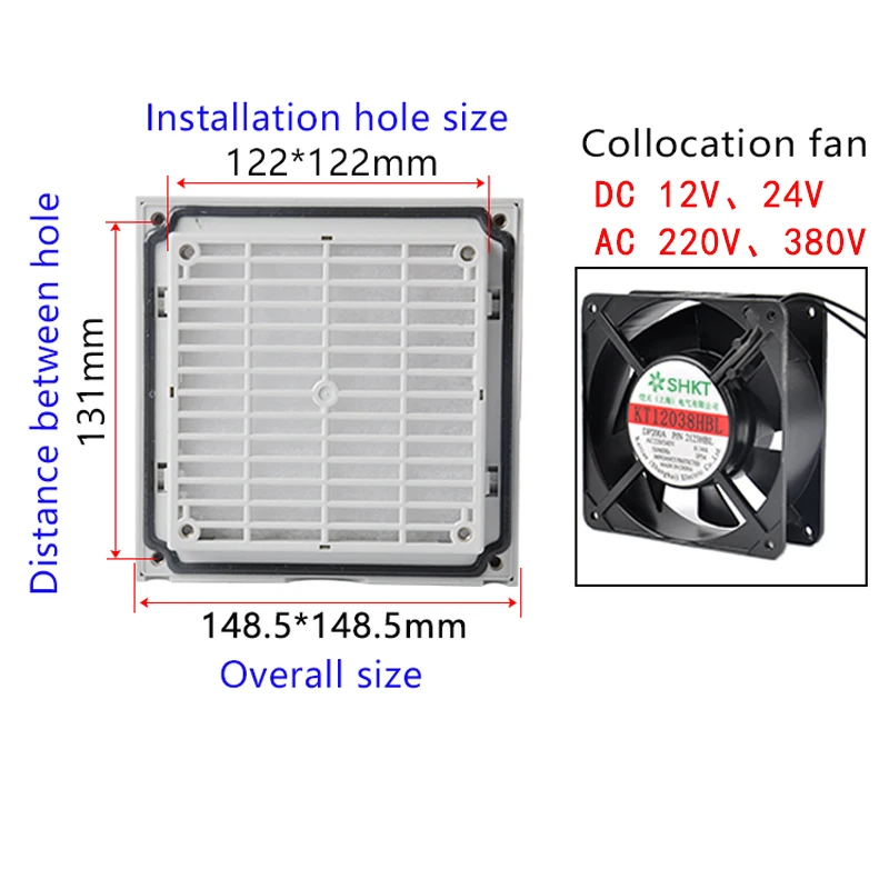 Он состоит из осевого вентилятора, защитного корпуса на передней и задней поверхностях и фильтра, предназначенного для удержания частиц пыли. Фильтры, которыми оснащены вентиляторы, необходимо регулярно чистить и заменять. Данный фильтр можно заменить во время работы без риска прикосновения к вращающейся части. Материал фильтрующей прокладки: 200 г/м3 нейлоновое волокно компаунд, эффективность фильтрации до 89%. Диапазон рабочих температур/влажности: (при небетонном состоянии) -20 °C ~ + 70 °C (температура), 0% ~ 95% (химидность) RAL 7035 gray-стандартное предложение с возможностью изменения на RAL 7032 посредством сменной решетки. Учитывайте потери давления, вызванные выпускным элементом (решетка с фильтром, вентиляционная решетка или простое открытие) при определении скорости потока вентилятора. Класс защиты: е н 60529 IP 54 (не подходит для наружного снаряжения).