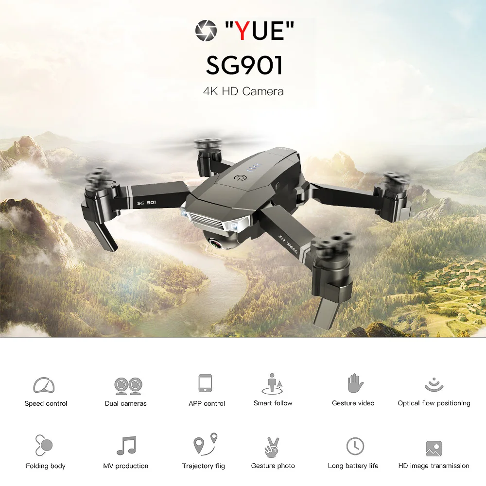 Этот интеллектуальный Дрон SG907 оснащен встроенным GPS и системой оптического позиционирования обеспечивает стабильный и точный полет. Камера высокой четкости 4K, 5G Wi-Fi FPV передача в реальном времени, видео/фото жестов, режим следования за мной, окружение с фиксированной точкой позволяет делать качественную аэрофотосъемку. Литиевая батарея высокой плотности увеличивает мощность и обеспечивает 18 минут полета, что дает вам более обширный опыт полета, что делает его идеальным подарком для детей и взрослых.