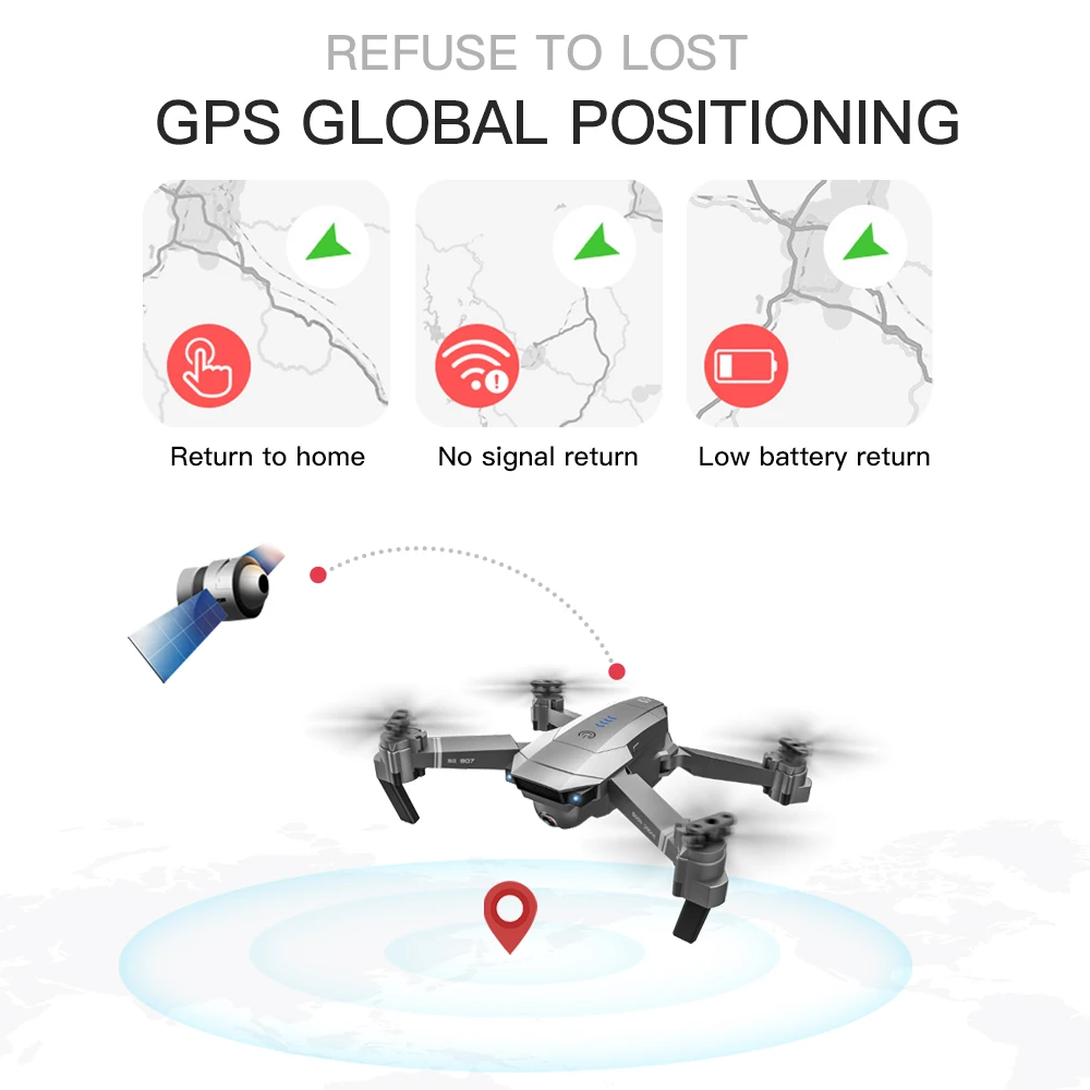 GPS и оптическая система позиционирования потока-оптическое положение потока устанавливается в горизонтальном направлении, а давление воздуха устанавливается на большой высоте для достижения стабильного полета, что делает изображение более четким. Модернизированная система позиционирования GPS, вернуться домой с помощью одной кнопки, вернуться домой автоматически, когда есть низкая мощность, вернуться домой, когда он потерял контроль.