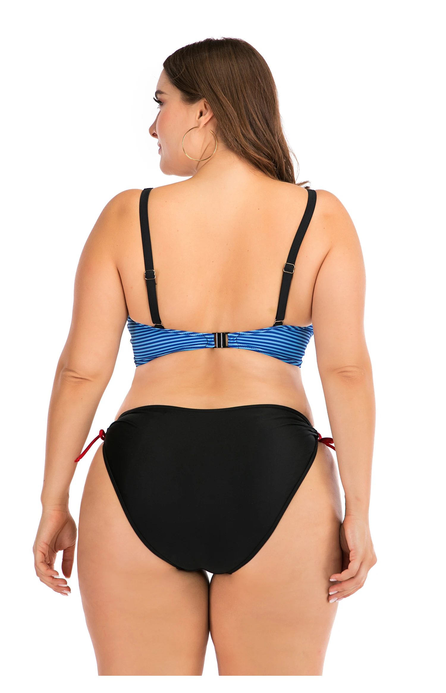 Размера плюс комплекты бикини Для женщин большой грудью Сталь пластина, сексуальным вырезом на спине и Плавание Купальники-бикини, пуш-ап, комплект из двух предметов с принтом бикини, пляжный купальник Плавание костюм