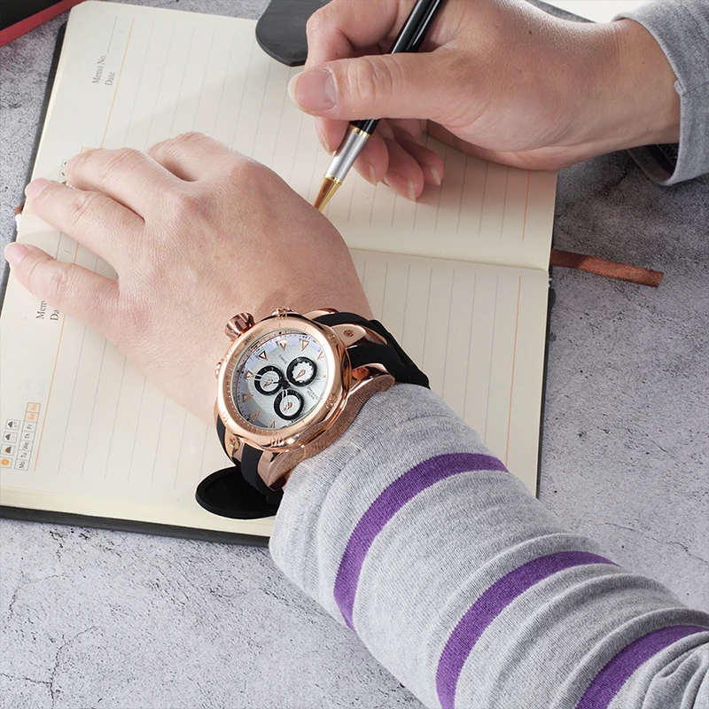 Importante информация о часах Когда часы под водой или влажные, никогда не используйте толкатели/звездочки или установите время. Чехлы для часов и металлические браслеты должны быть тщательно промыты в пресной воде после нахождения в соленой воде. Когда аналоговые стрелки считываются между 8:00 и 3:00 AM, не следует корректировать обратную сторону или дату. В эти времена шестерни слишком близко друг к другу, и такое изменение может привести к повреждению. Нет гидромассажной ванны/сауны. Пожалуйста, не помещайте часы в горячую сауну. Сочетание экстремального тепла и воды приводит к тому, что ваши часы теряют водостойкость.