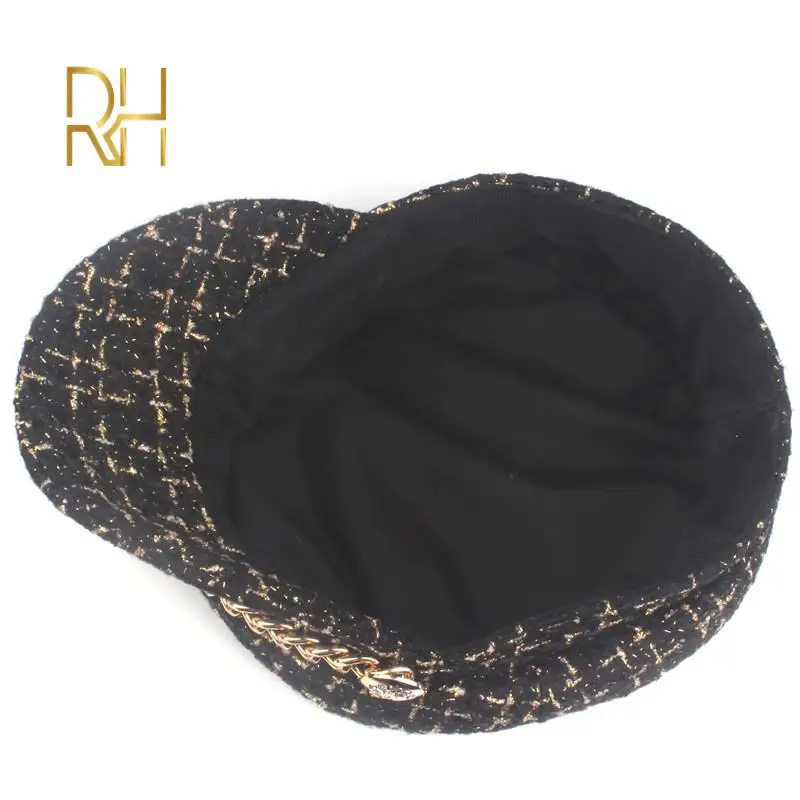 Женская твидовая Кепка в стиле милитари, элегантная плотная восьмиугольная шляпа в клетку с украшением в виде золотой цепочки 1. Материал: твидовая клетчатая ткань 2. Цвет: черный, белый, красный 3. Сезон: весна, осень, зима 4. Размер: взрослый размер, подходит для окружности головы 56-58 смПримечание: измерения проводились вручную, возможна погрешность в 1-3 см.