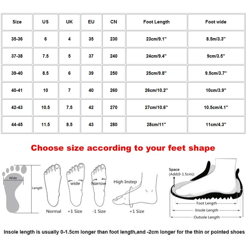 Warm Reminder:Different Shoe Styles,Please Select The Size According To Your Foot Type