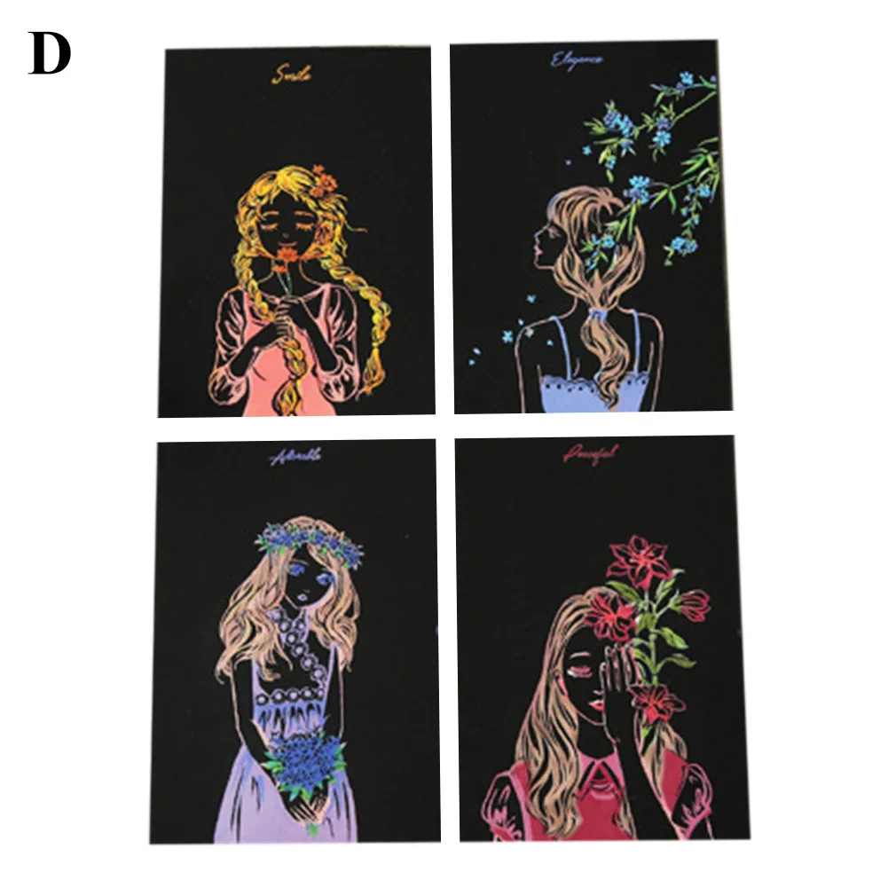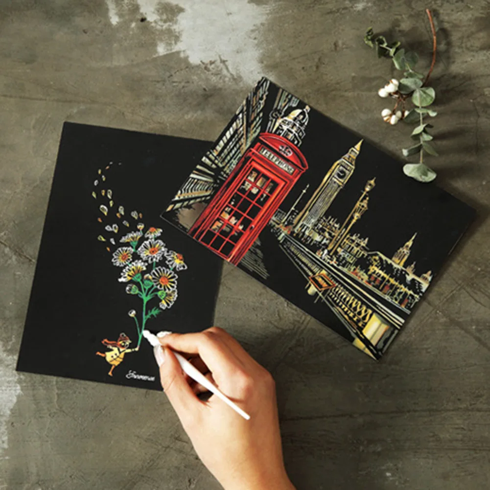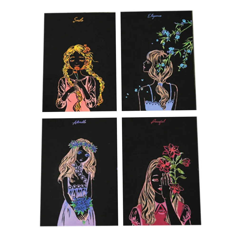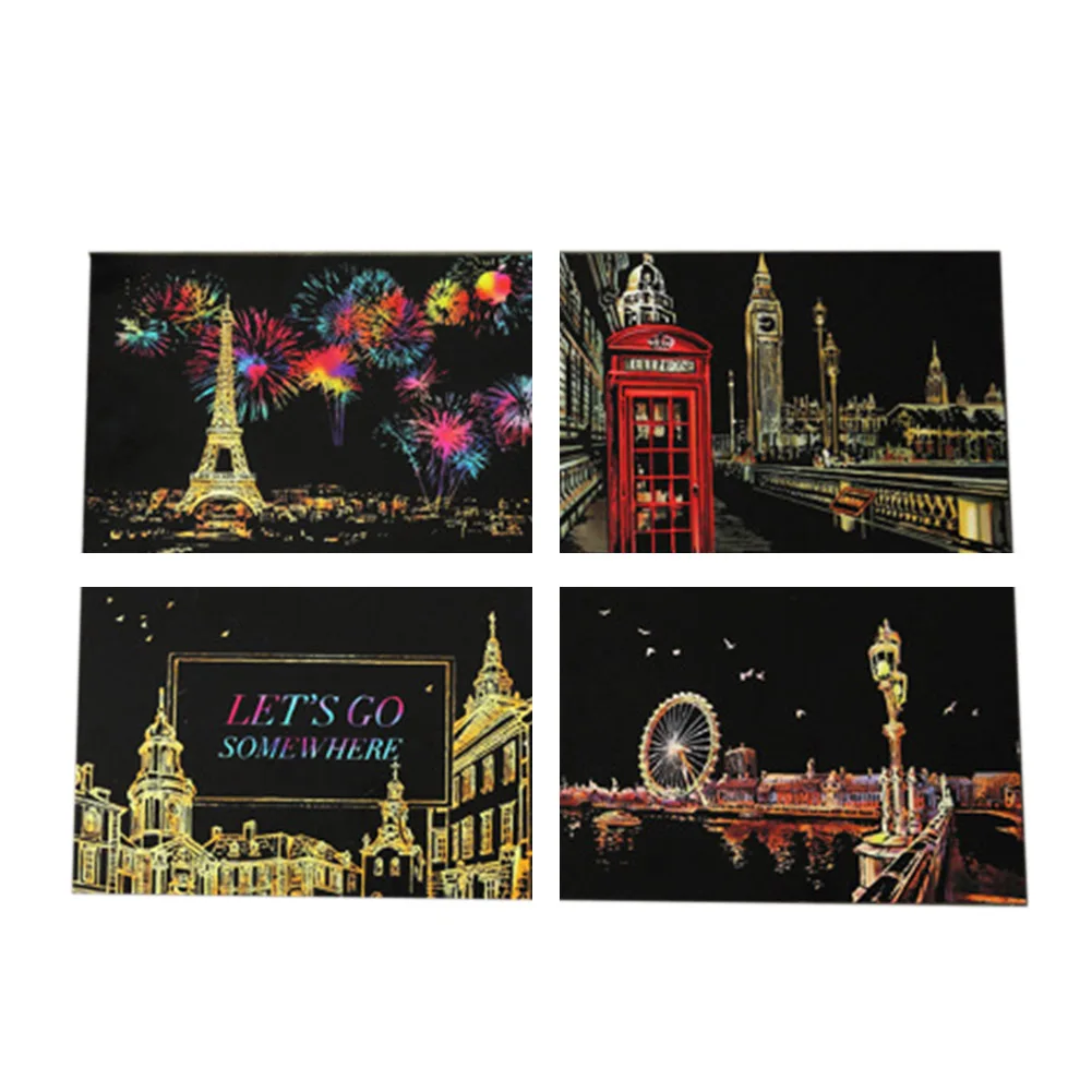 4 шт здания цветок девушка царапины Искусство Живопись доска для рисования бумага ребенок подарок игрушка